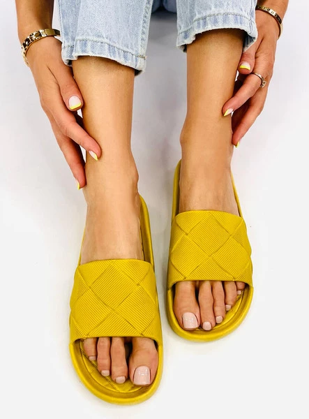 Klapki damskie gumowe. Wzrok przyciąga prosty fason o najmodniejszym, pikowanym wzorze... To patent na wygodę, a ponadto modowy hit sezonu : ) Nie czekaj i zamów je już dziś, a nie pożałujesz! Materiał zewnętrzny - guma.