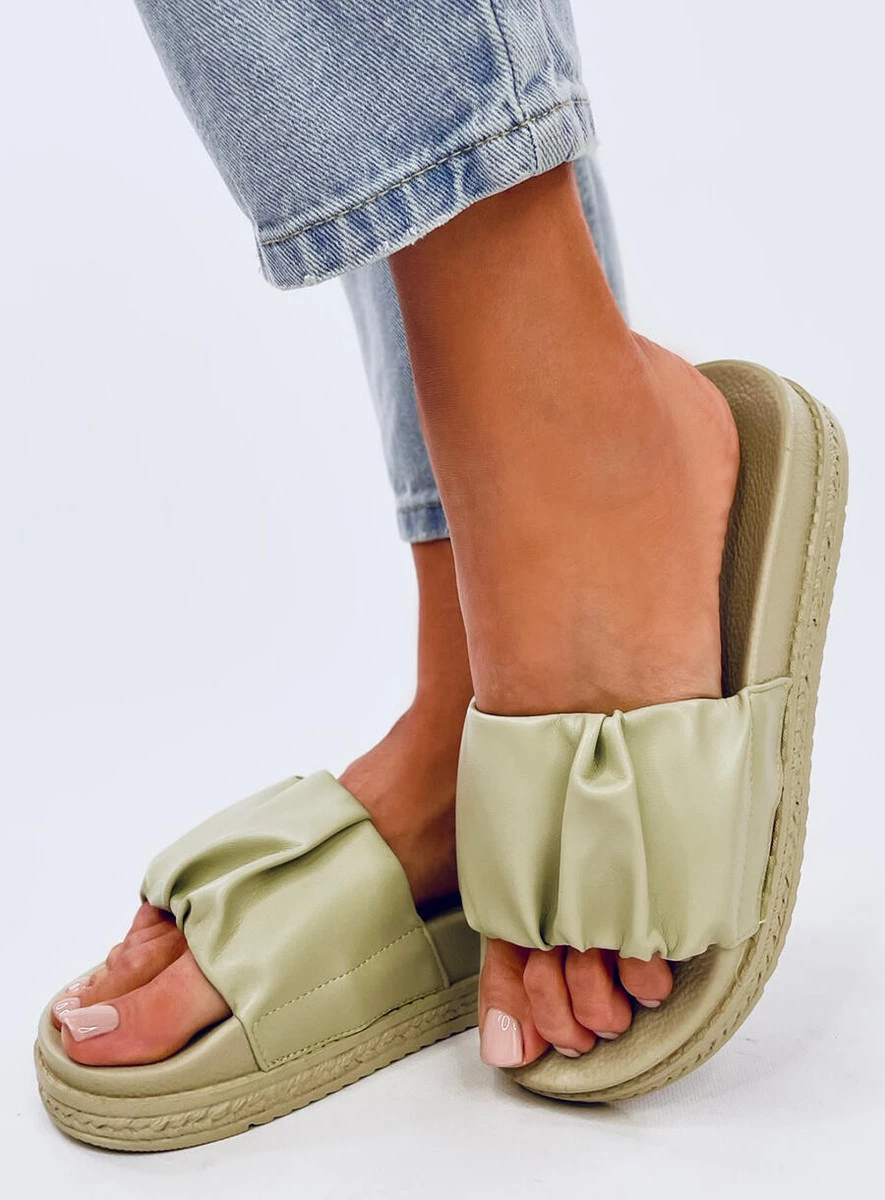 Licowe klapki damskie. Model na najmodniejszej, wysokiej podeszwie (3,5 cm) idealnie wpisuje się w trendy tego sezonu. Ma być modnie i komfortowo! Jesteśmy przekonane, że te klapki z profilowaną wkładką wewnętrzną spełnią Twoje oczekiwania : ) Materiał zewnętrzny – skóra ekologiczna.