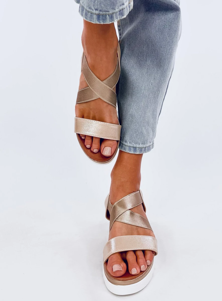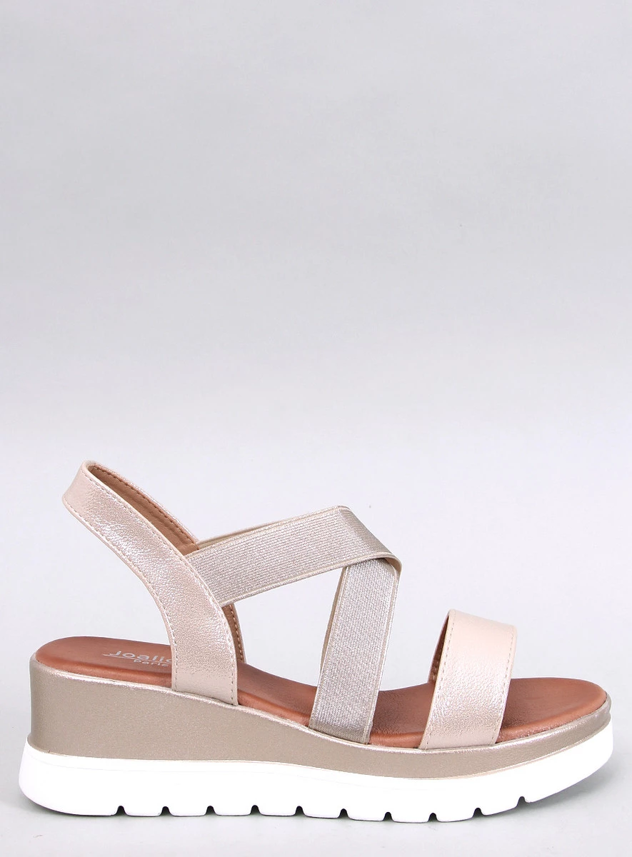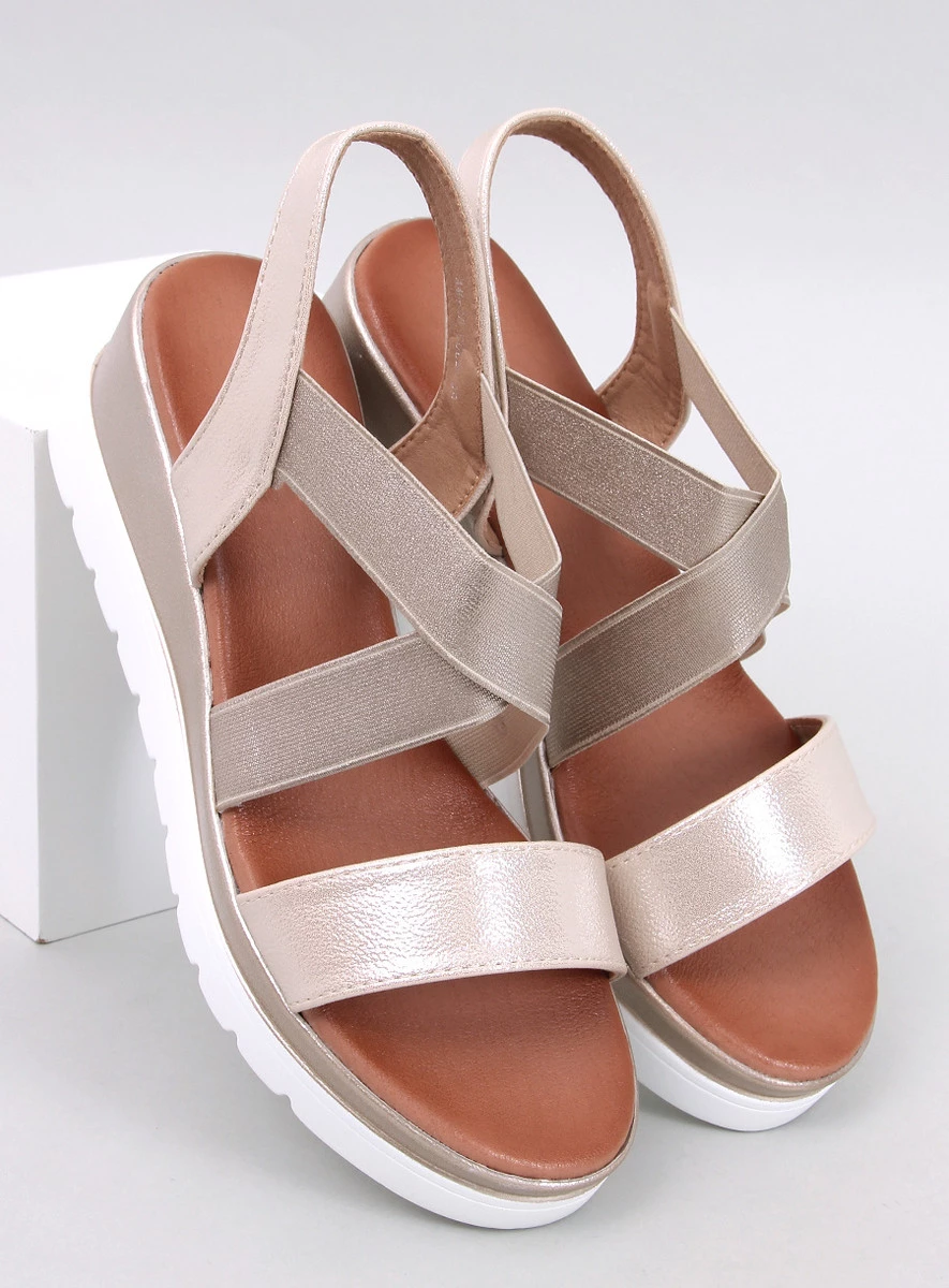 Metaliczne sandałki damskie na koturnie o wysokości 6 cm. Model jest wyjątkowo lekki i ma modną platformę o wysokości 3 cm, dzięki czemu cały dzień będziesz czuć się komfortowo. Te buty z pewności spełnią Twoje oczekiwania : ) Materiał zewnętrzny – skóra ekologiczna + guma.