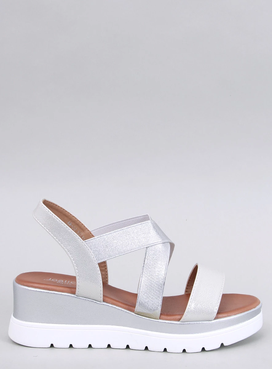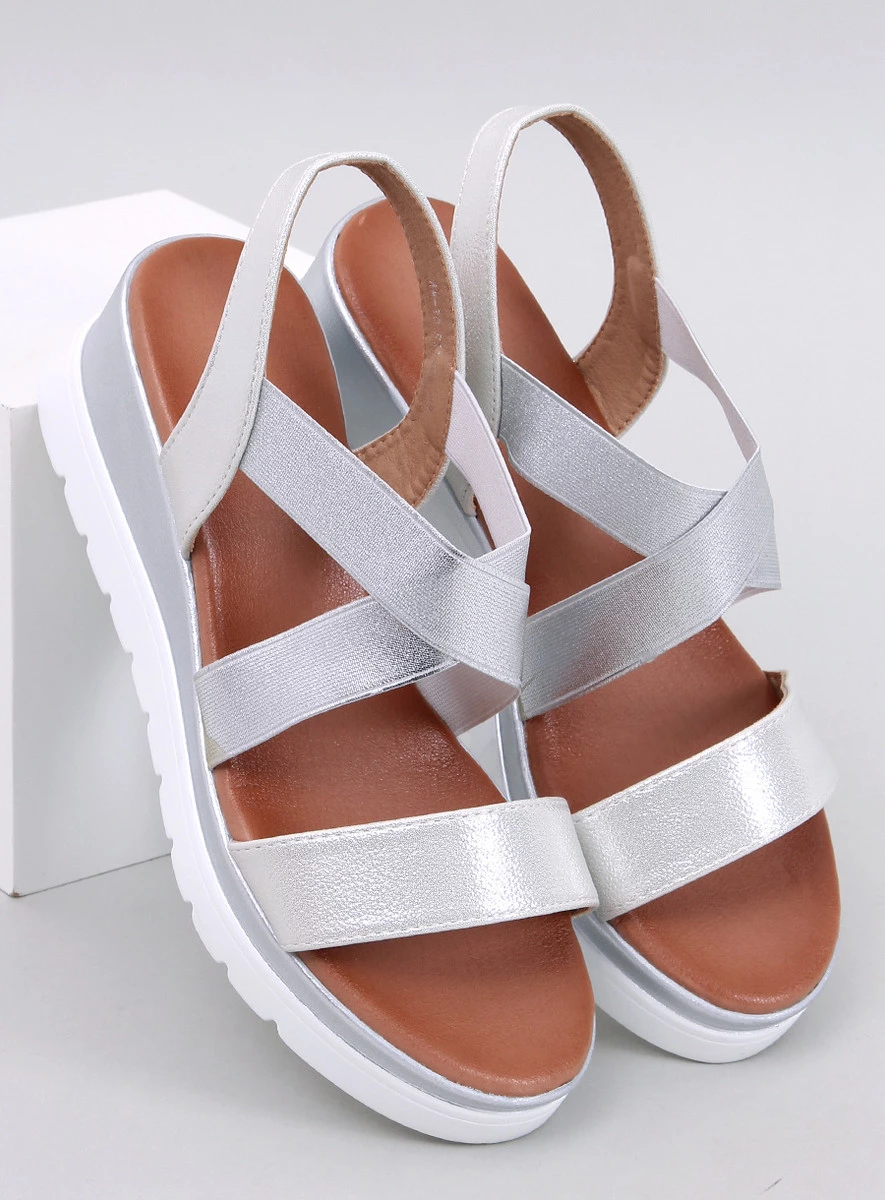 Metaliczne sandałki damskie na koturnie o wysokości 6 cm. Model jest wyjątkowo lekki i ma modną platformę o wysokości 3 cm, dzięki czemu cały dzień będziesz czuć się komfortowo. Te buty z pewności spełnią Twoje oczekiwania : ) Materiał zewnętrzny – skóra ekologiczna + guma.