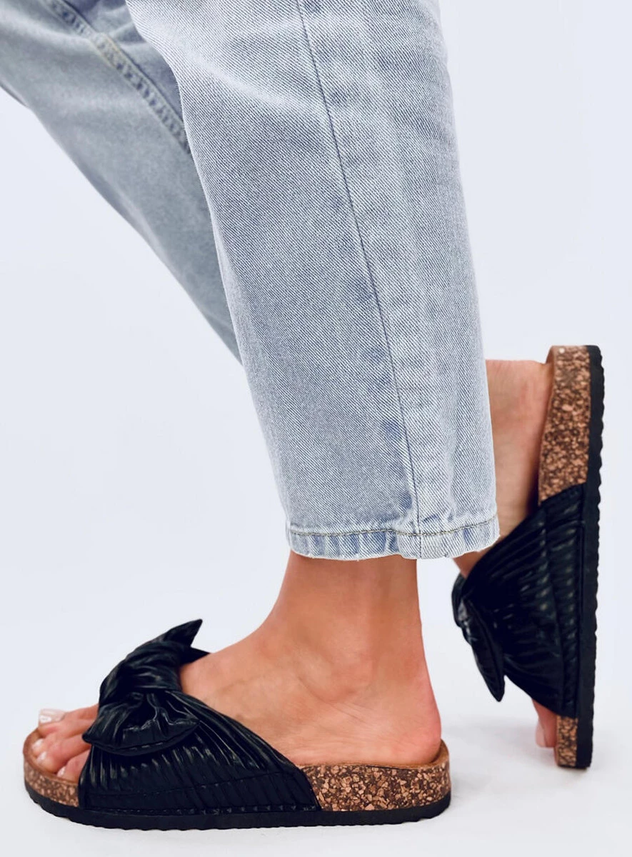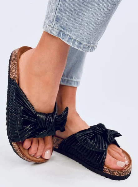 Licowe klapki damskie. Mają najmodniejszy fason na korkowej podeszwie i z urokliwą kokardą. Profilowana wkładka wyścielona tkaniną, która zapewni komfort na każdym kroku... Zakochacie się w nich od pierwszego wejrzenia : ) Materiał zewnętrzny – skóra ekologiczna.
