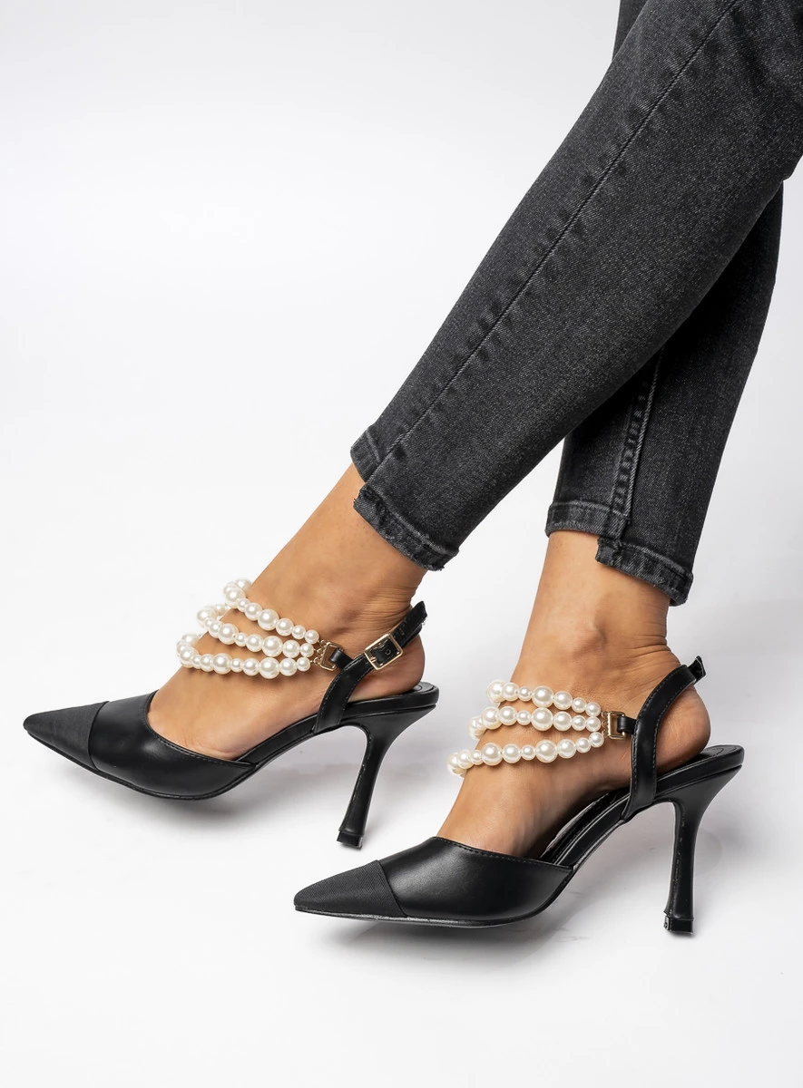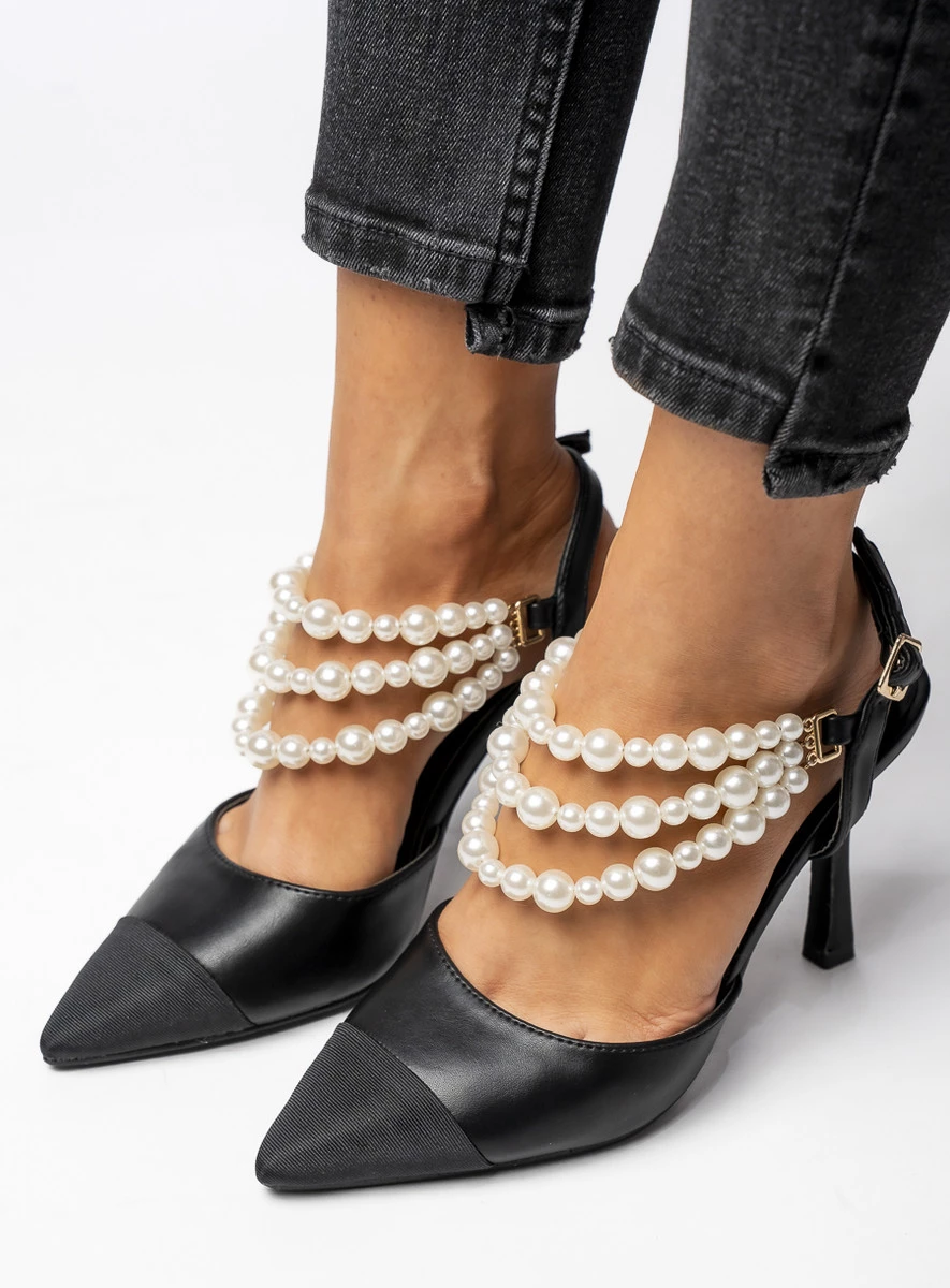 Opinie o Czółenka z odkrytą pięta z perłami HARMONY BLACK