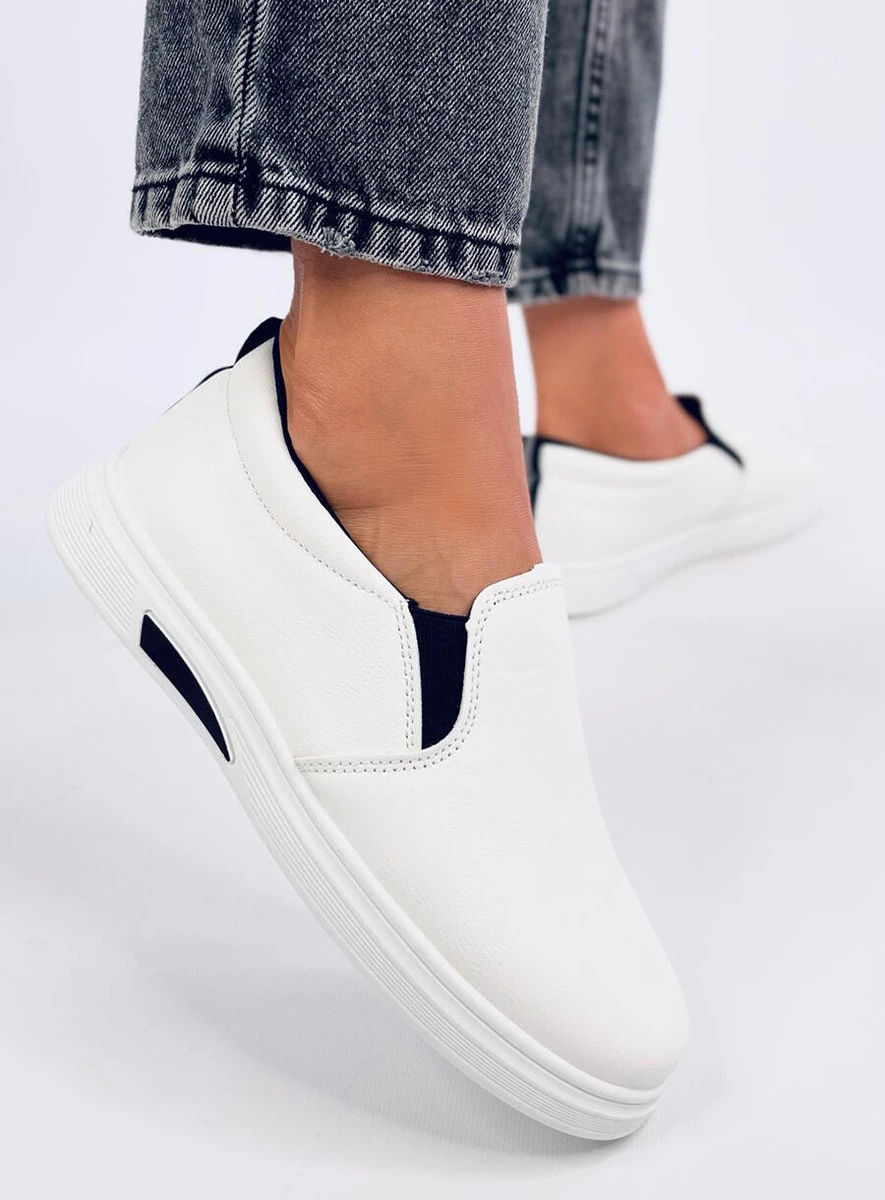 Trampki damskie typu slip-on. Kontrastowe dodatki sprawiają, że buty mają tak zwane „to coś“. Te wsuwane trampki to gwarancja stworzenia w prosty sposób doskonałej wiosennej stylizacji – sprawdź to sama! Wykonane są ze skóry ekologicznej, a wnętrze wyścielone jest tkaniną.