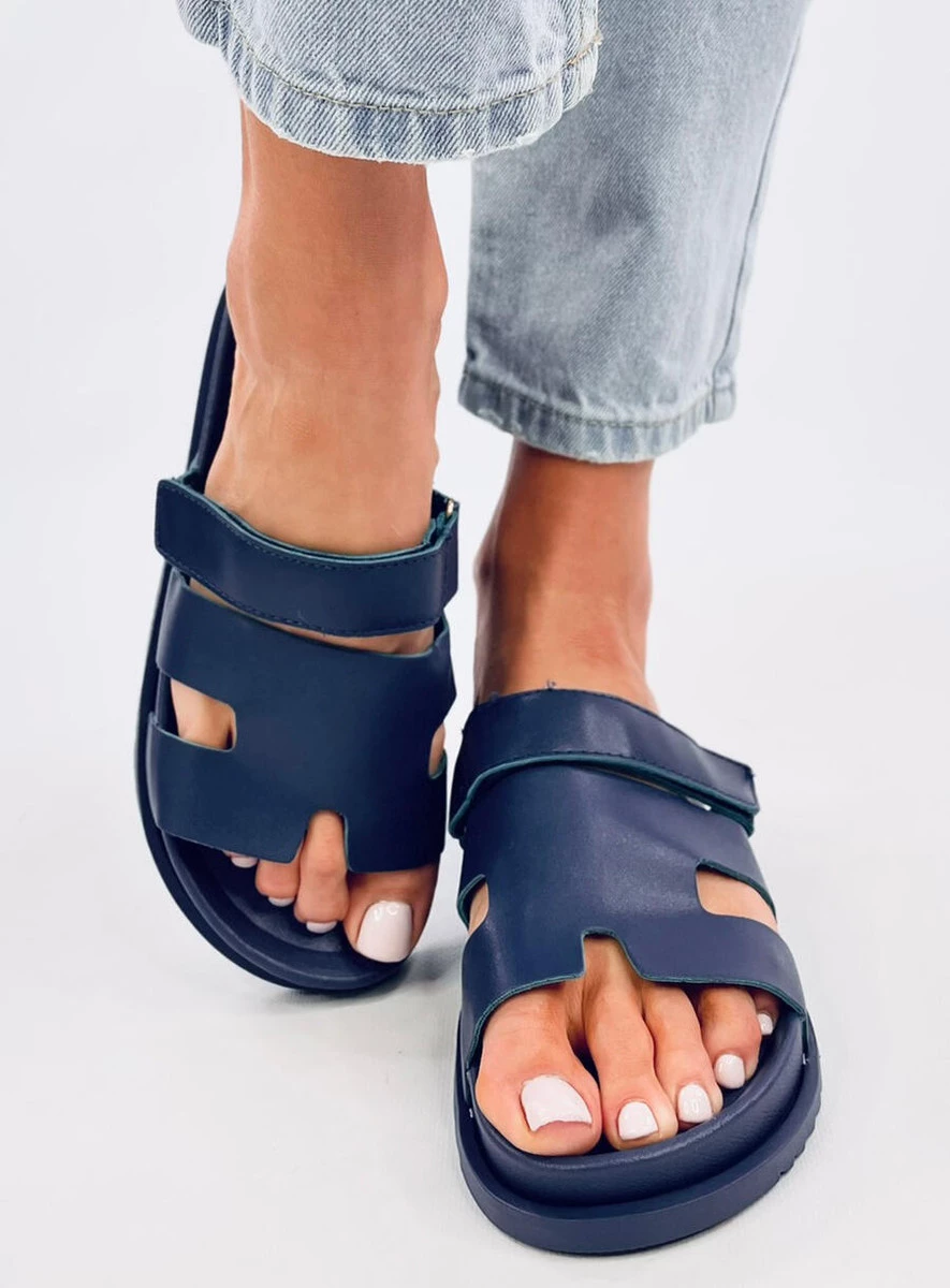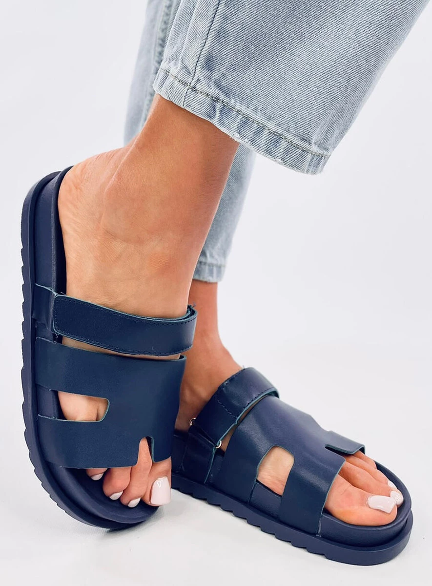 Klapki damskie na płaskiej podeszwie. Ten model w najmodniejszych kolorach idealnie wpisuje się w trendy tego sezonu. Świetnie wyprofilowana wkładka zapewni komfort na każdym kroku... Ma być modnie i wygodnie! Materiał zewnętrzny – skóra ekologiczna.