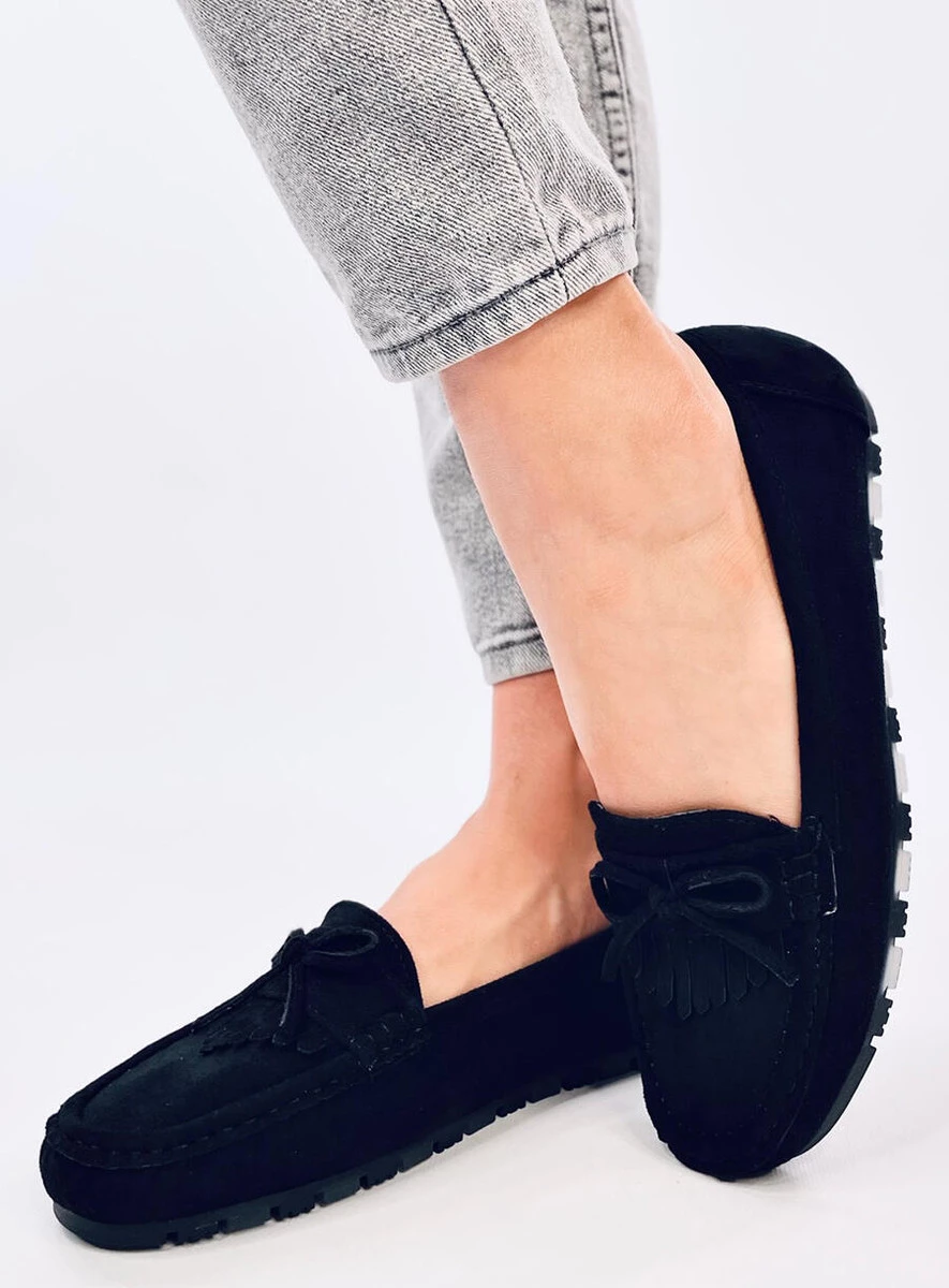 Zamszowe mokasyny damskie. Model ma klasyczny fason z ozdobną kokardką oraz frędzelkami. Mokasyny cieszą się ogromną popularnością wśród wielbicielek wygody – mięciutka wkładka wewnętrzna z poduszeczką zapewni komfort na każdym kroku... Materiał zewnętrzny - zamsz ekologiczny.