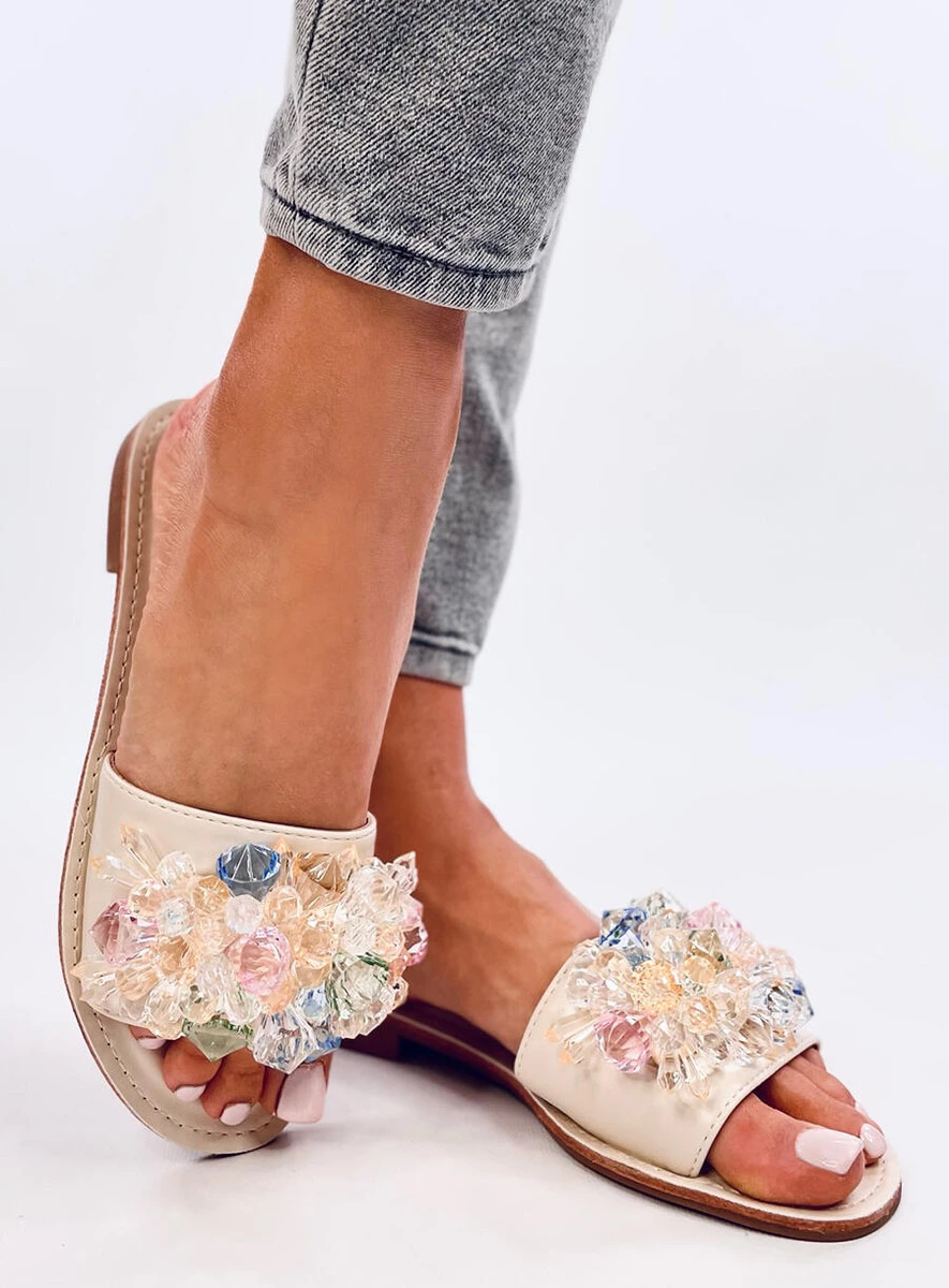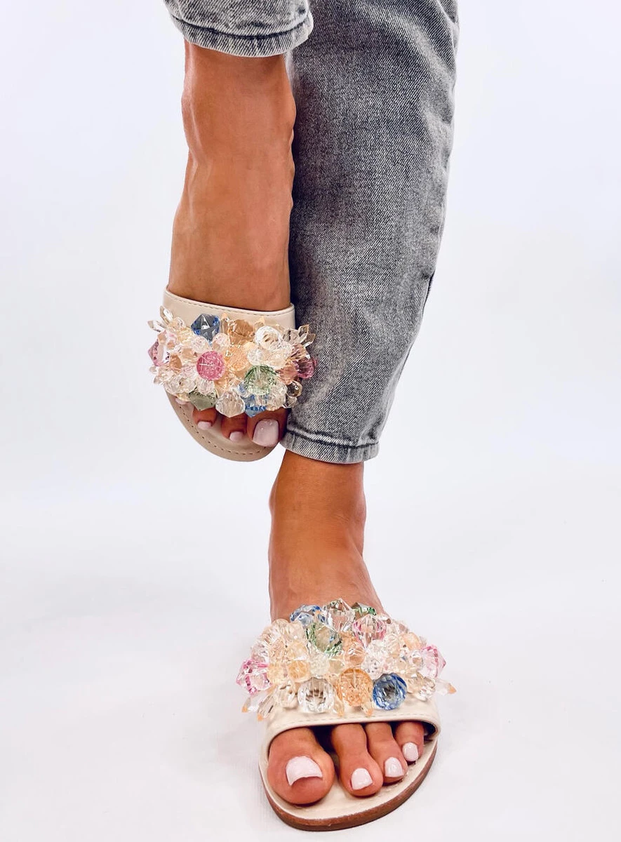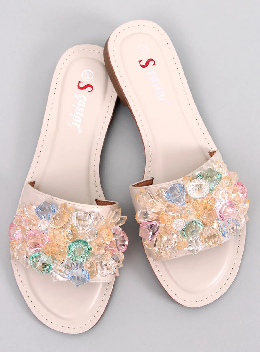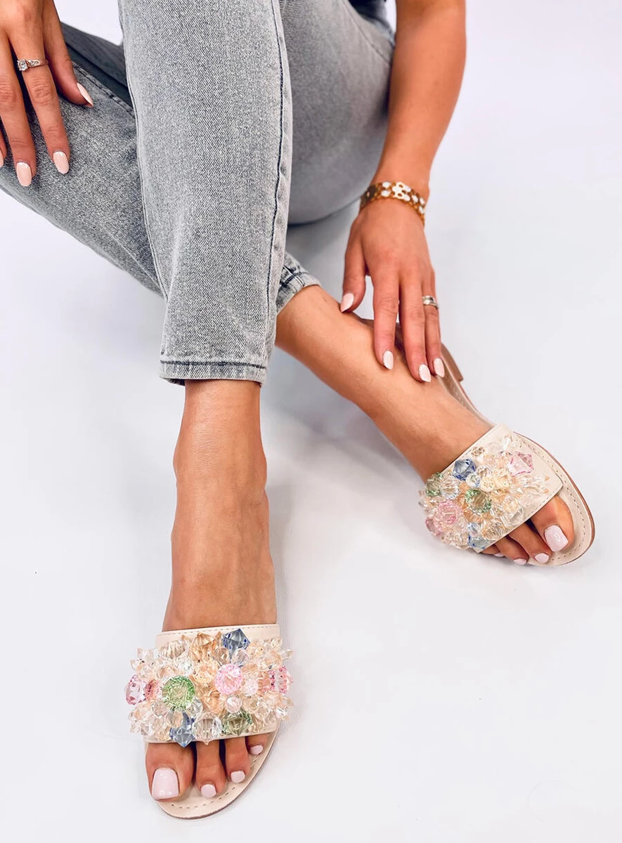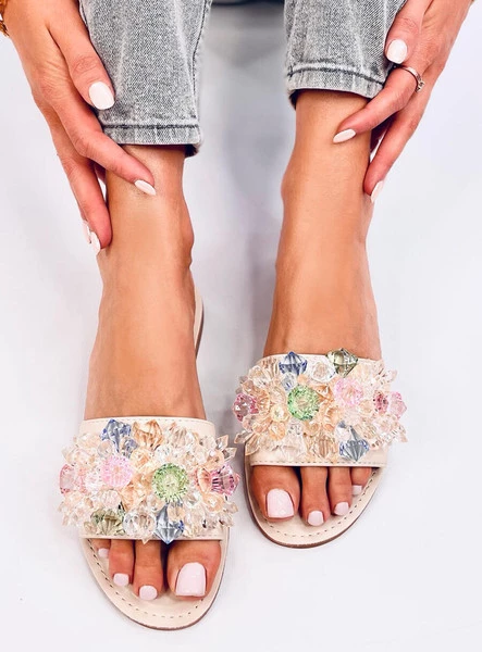 Opinie o Klapki z kolorowymi kamieniami ESTRADA BEIGE