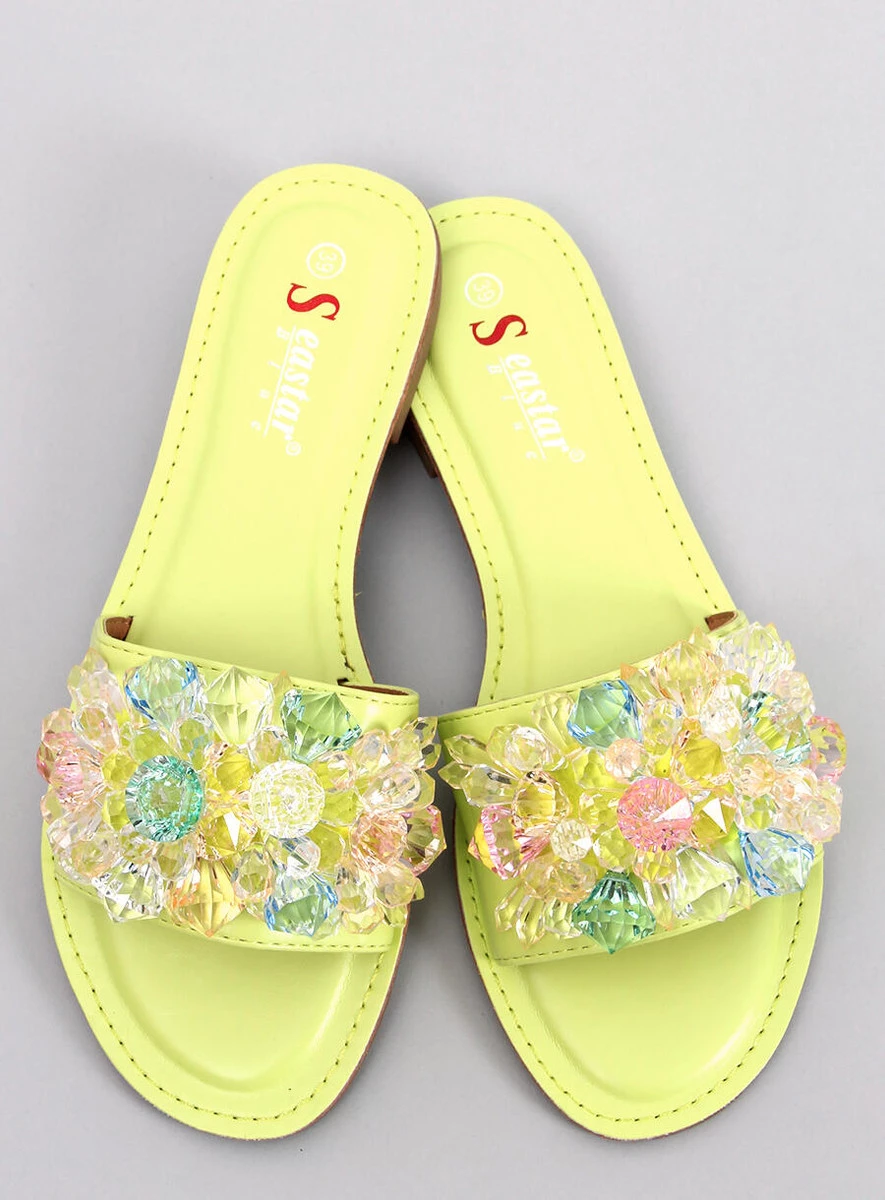 Klapki z kolorowymi kamieniami ESTRADA GREEN