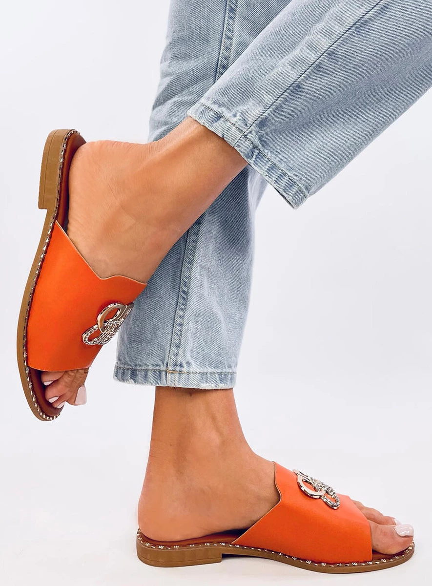Klapki damskie z cyrkoniami na płaskiej podeszwie. Dla prawdziwych gwiazd tego lata mamy model z stylową ozdobą oraz efektowną lamówką. Jeśli chcesz wyglądać wyjątkowo i cieszyć się wygodą na każdym kroku to musisz je mieć : ) Materiał zewnętrzny - skóra ekologiczna.