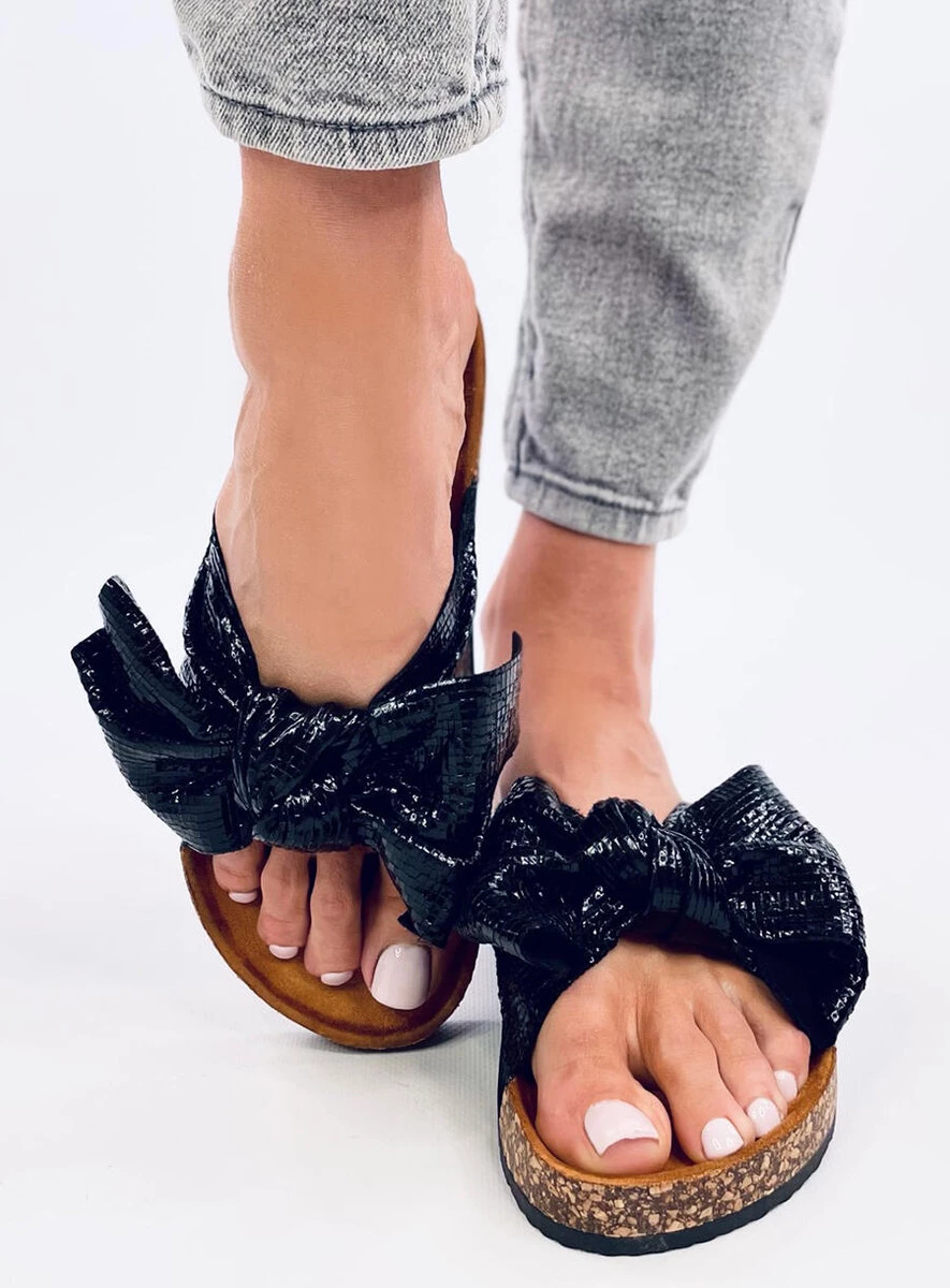 Opinie o Klapki korkowe z kokardą AMUR BLACK