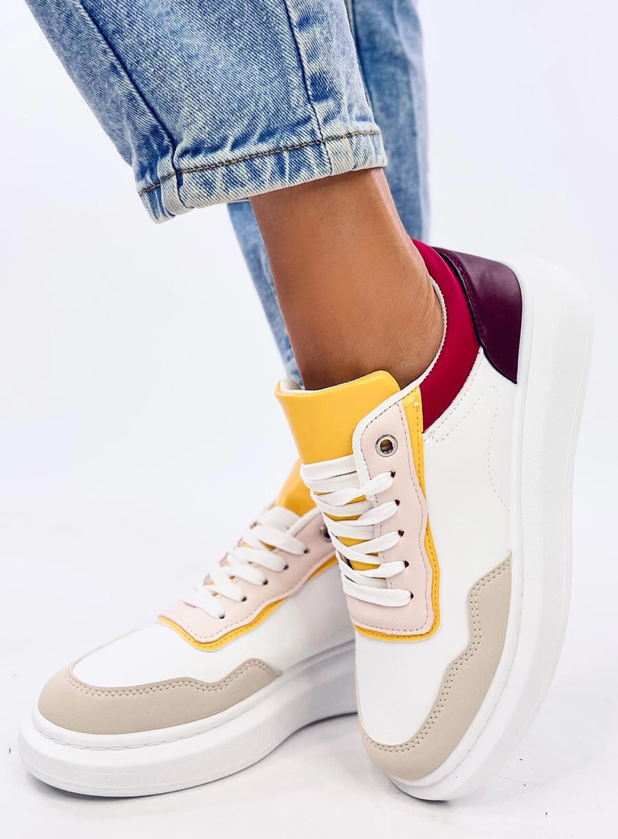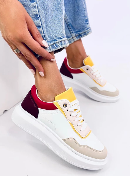 Buty sportowe damskie na wysokiej podeszwie. Model wyróżnia się przede wszystkim idealnym zestawieniem kolorystycznym, który skradnie Wasze serca : ) Przekonaj się sama, jak wyjątkowo będziesz w nich wyglądać, a przy tym czuć się komfortowo! Wnętrze butów wyścielone jest tkaniną. Materiał zewnętrzny – zamsz ekologiczny + skóra ekologiczna.