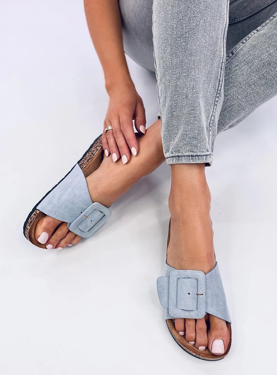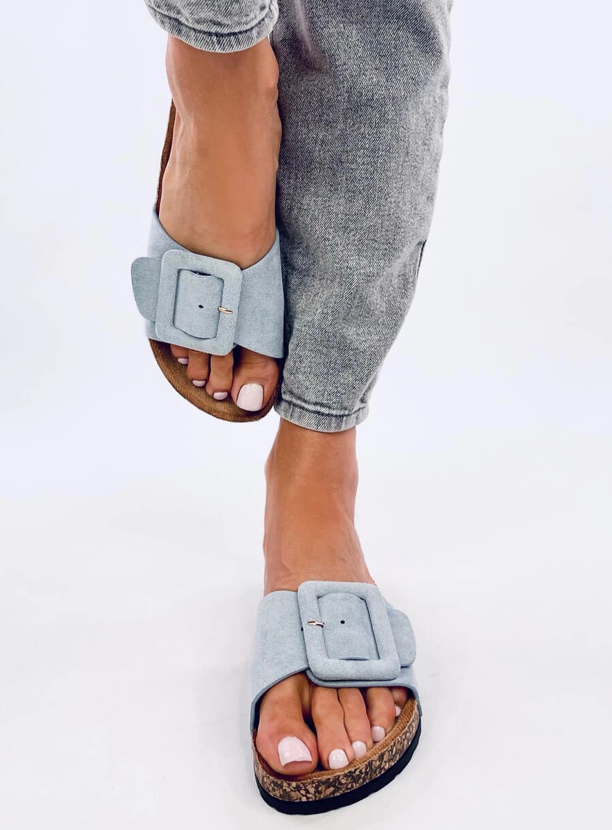 Opinie o Klapki na korkowej podeszwie PRIYA BLUE