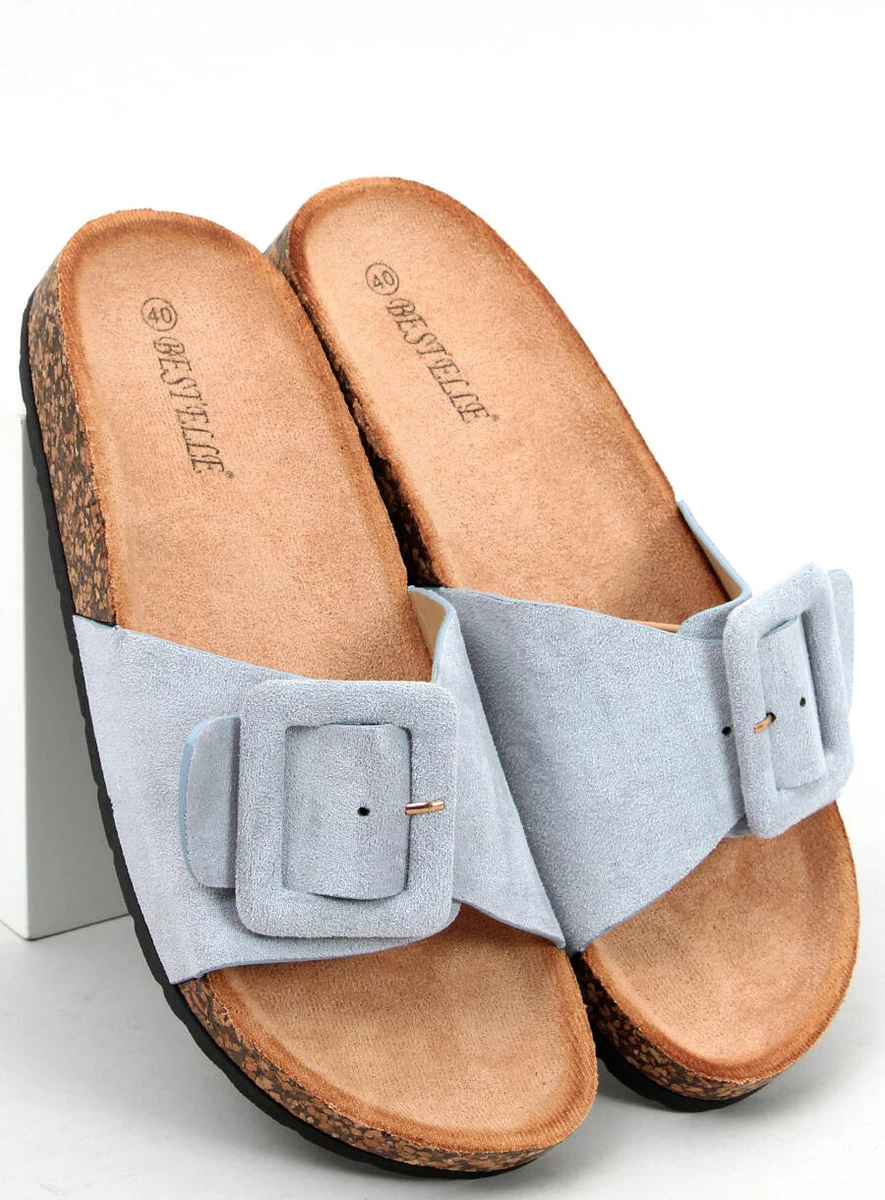 Zamszowe klapki damskie na korkowej podeszwie. Mają szeroki pas z regulowaną klamerką, która zapewnia idealne dopasowanie do stopy. Te niesamowicie wygodny model z profilowaną wkładką wewnętrzną. Z pewnością zakochacie się nich od pierwszego założenia! Materiał zewnętrzny – zamsz ekologiczny.