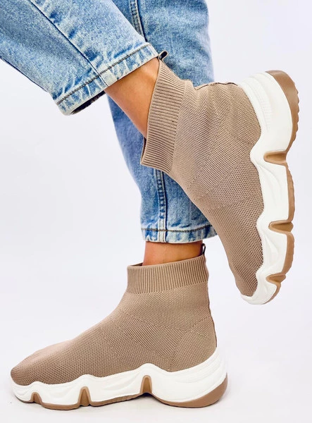 Buty sportowe damskie na wysokiej podeszwie. Wykonane są w całości z elastycznej tkaniny, która w dotyku przypomina skarpetkę, dzięki czemu idealnie dopasowują się do stopy. Z tymi butami super modna i wygodna stylizacja gotowa - przekonaj się o tym sama : ) Materiał zewnętrzny - tkanina.