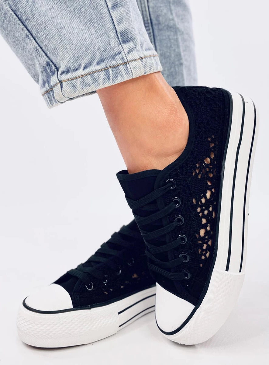 Koronkowe trampki damskie. Ten model jest bardzo delikatny i subtelny dzięki pokrywającej go koronce, a wysoka podeszwa nadaje charakteru. Całość tworzy bardzo spójny look. Jeśli lubisz modne rozwiązania i trendy to te buty są dla Ciebie stworzone! Materiał zewnętrzny + wewnętrzny – tkanina.