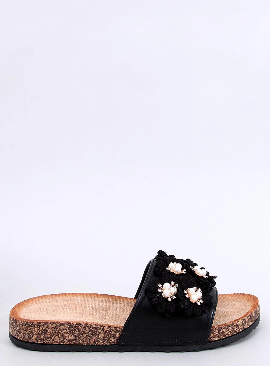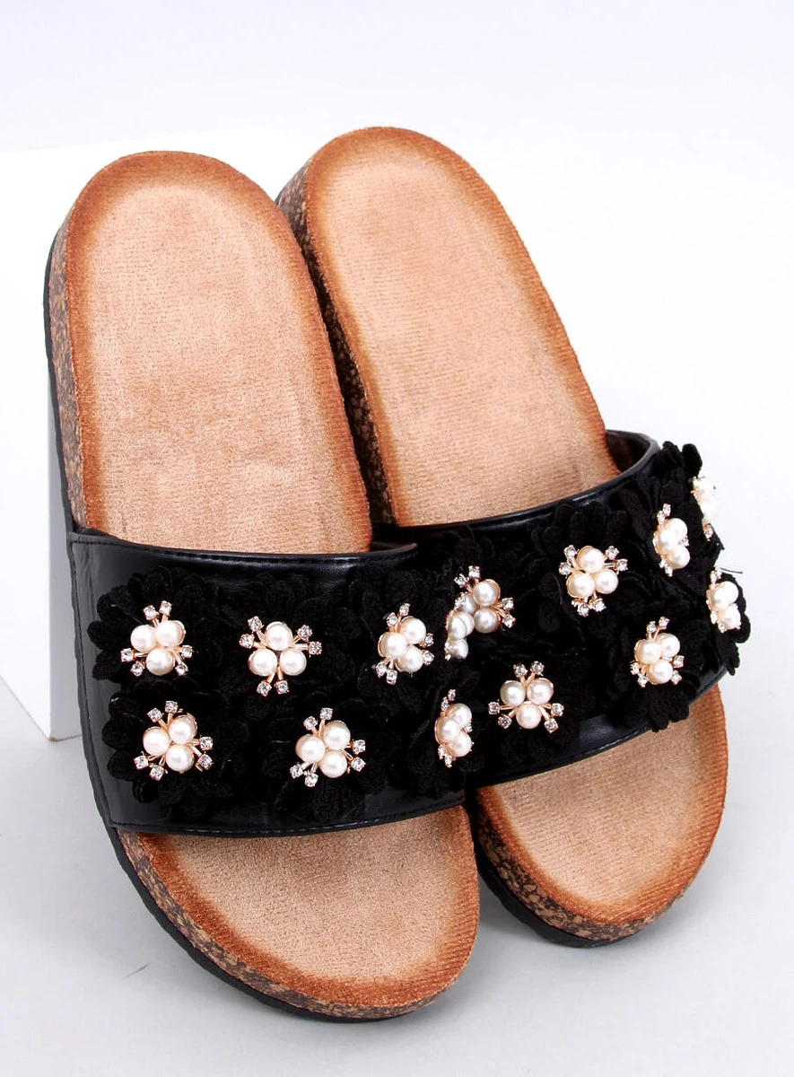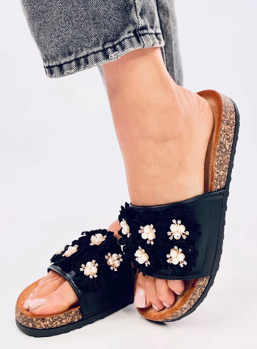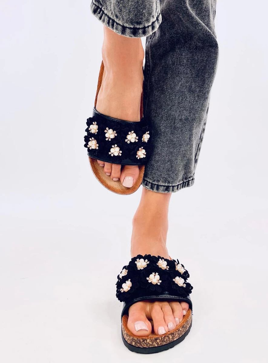 Klapki korkowe z kwiatuszkami EMILES BLACK