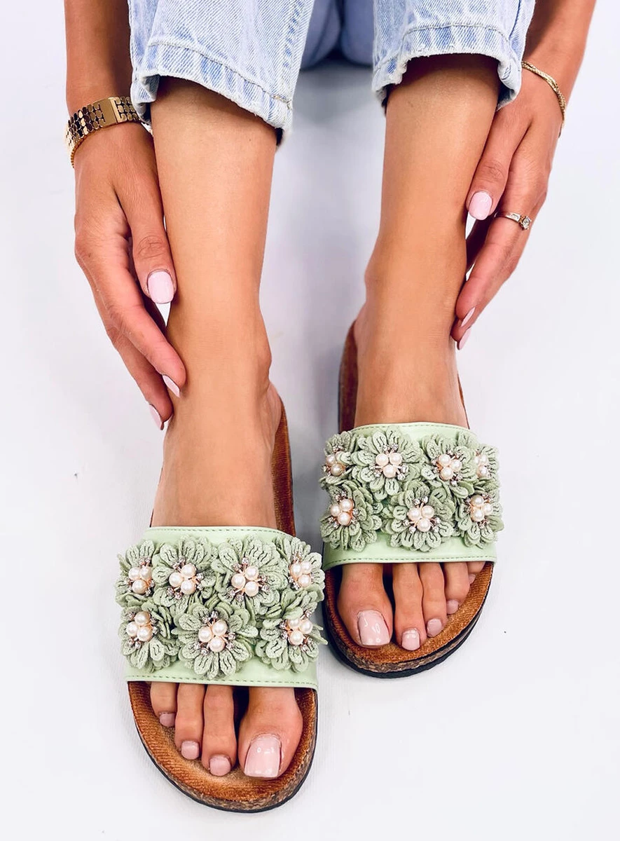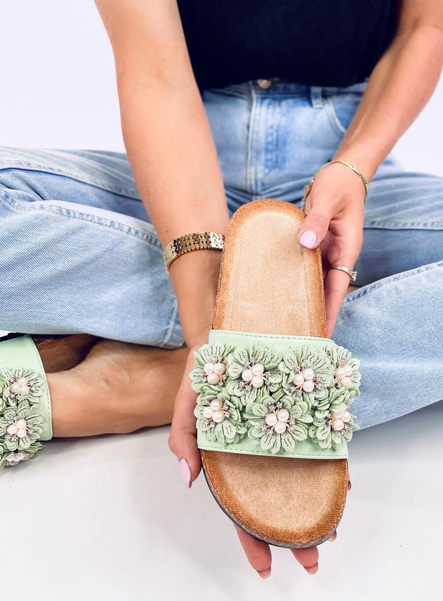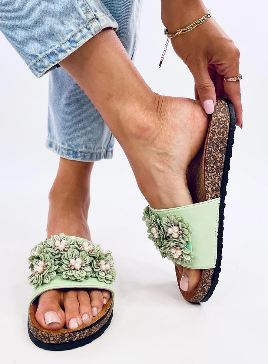 Opinie o Klapki korkowe z kwiatuszkami EMILES GREEN