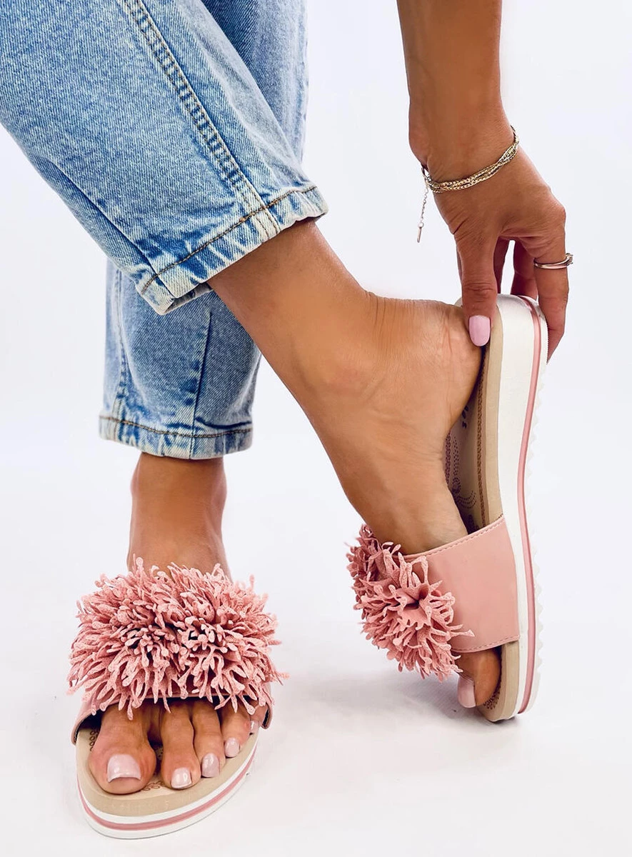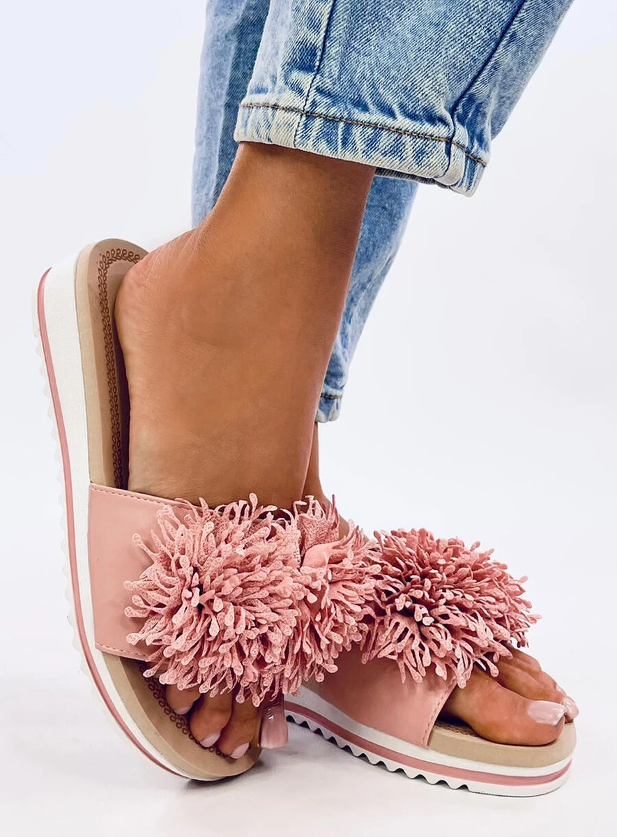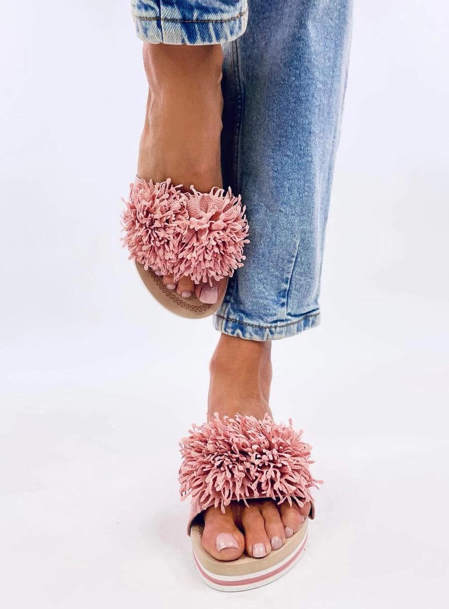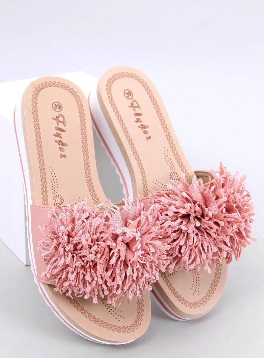 Klapki damskie na koturnie o wysokości 3,5 cm. To co przykuwa uwagę to przepiękna kwiecista aplikacja, która jest obowiązkowym dodatkiem w tym sezonie : ) Będziesz wyglądać wspaniale w każdej sytuacji i cieszyć się wygodą na każdym kroku! Materiał zewnętrzny – skóra ekologiczna.