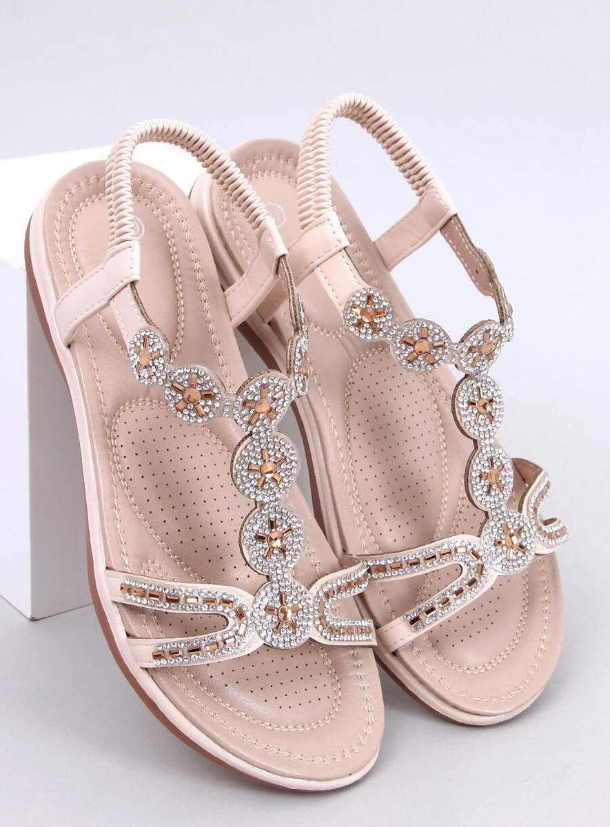 Sandałki z ozdobnymi cyrkoniami YVERS BEIGE