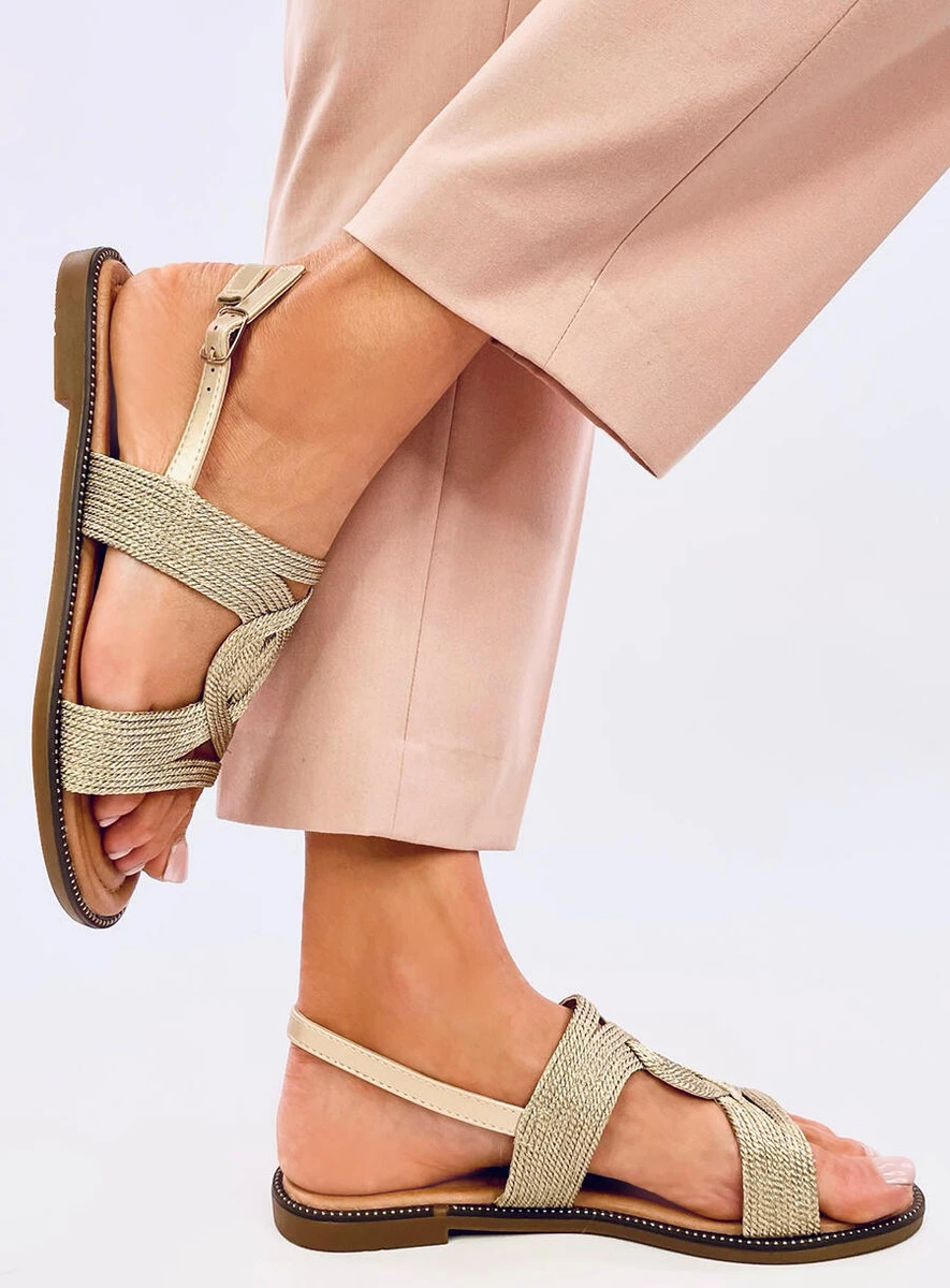 Płaskie sandałki damskie. Ich nietuzinkowe wykończenie pięknie podkreśla stopę - przekonaj się sama jak wyjątkowo będziesz w nich wyglądać : ) Regulowane zapięcie zapewnia odpowiednie dopasowanie, a płaska podeszwa zagwarantuje komfort na każdym kroku. Gotowa na letnie dni? : ) Materiał zewnętrzny – skóra ekologiczna + tkanina.