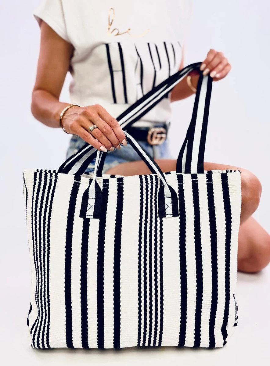 Torba plażowa damska w pionowe paski. Ten wyjątkowy model na pewno wpadnie Wam w oko : ) Torba zapinana jest na całej długości na zamek błyskawiczny, a wewnątrz znajduje się jedna, pojemna komora. Można ją nosić na krótkich lub długich rączkach. Z łatwością pomieści wszystkie najpotrzebniejsze rzeczy, które przydadzą się na plażę lub spacer.
