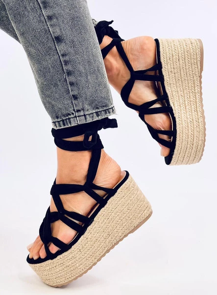 Espadryle damskie na koturnie o wysokości 8 cm oraz platformie 6 cm. Twoje nogi będą w nich obłędnie długie! Lniane wykończenie w stylu boho oraz wiązanie wokół kostki pięknie podkreśla stopę... Te buty zrobią na każdym wrażenie! Materiał zewnętrzny – zamsz ekologiczny.