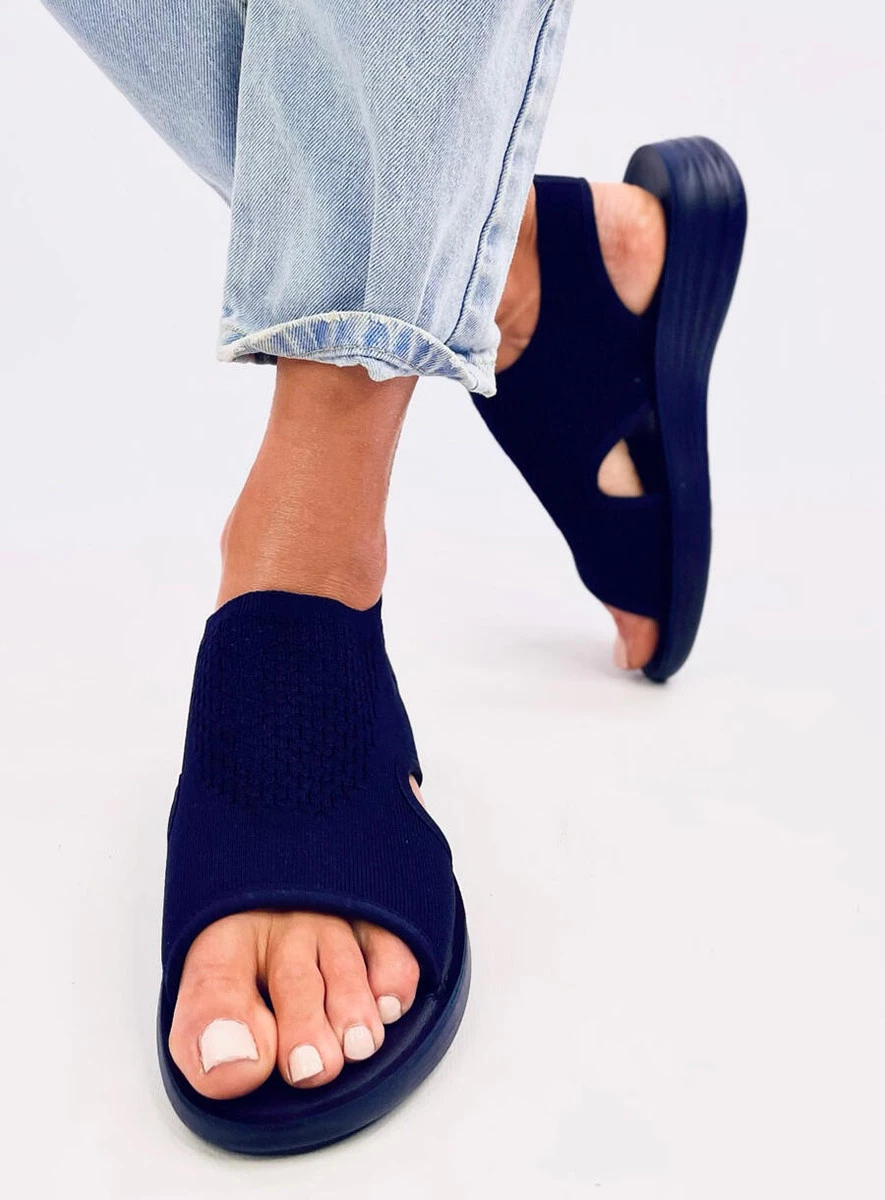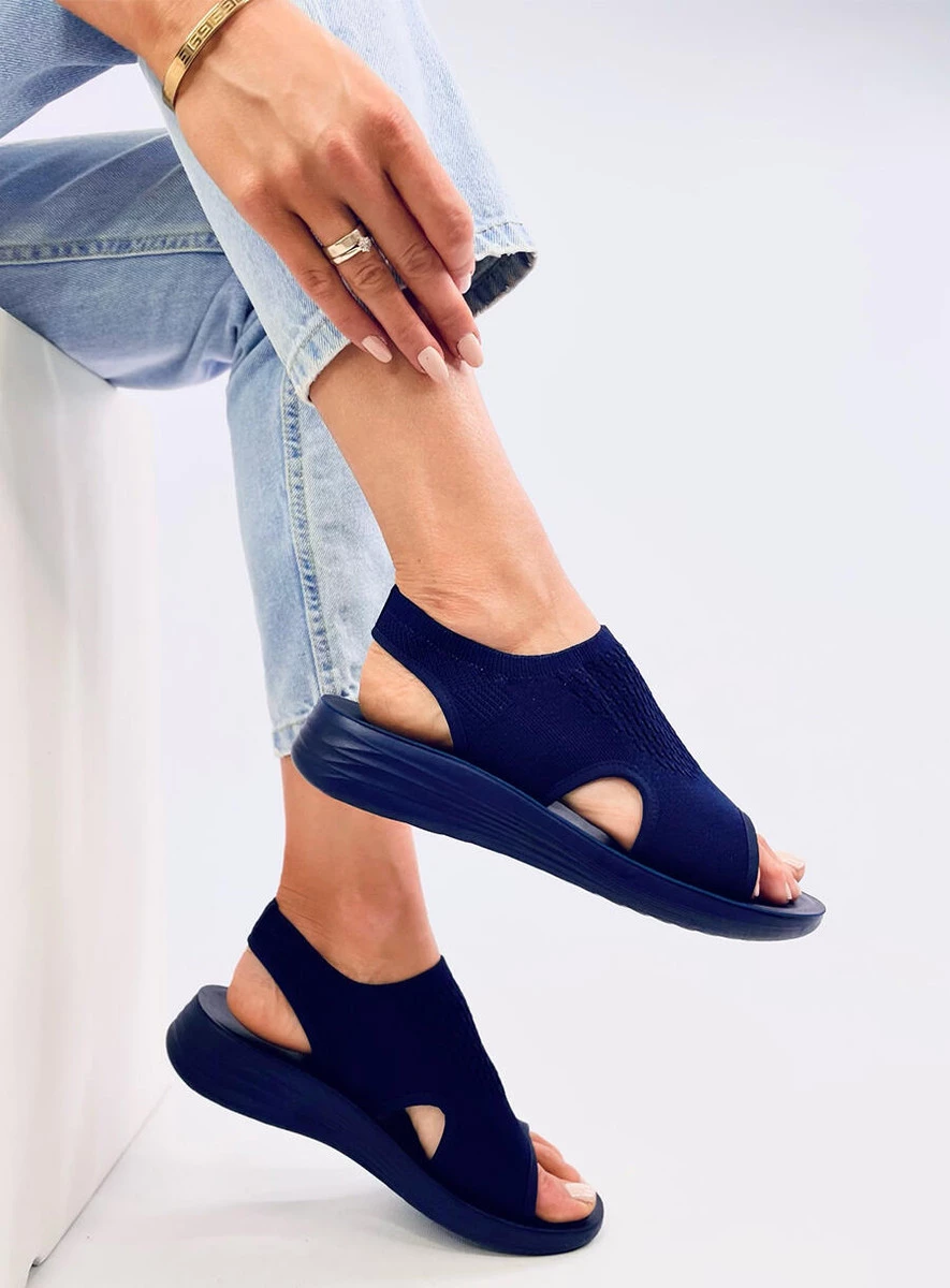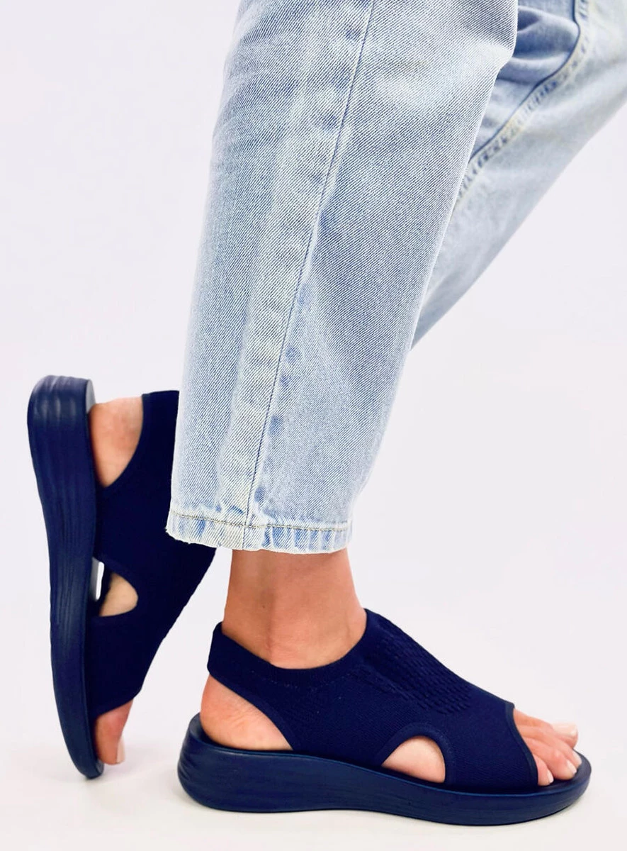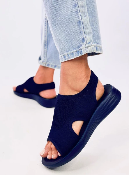 Ażurowe sandałki damskie na delikatnym podwyższeniu (3,5cm). Szeroki pasek wykonany z przewiewnej i elastycznej tkaniny zapewni komfort na każdym kroku... W tych sandałkach można zakochać się od pierwszego założenia! Materiał zewnętrzny – tkanina.
