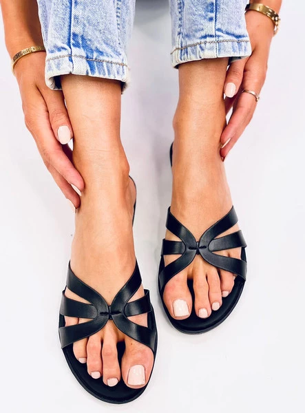 Delikatne klapki damskie na płaskiej podeszwie. Dzięki subtelnym paskom buty pięknie prezentują się na stopie. Klapki to rozwiązanie wygodne i praktyczne, ale również bardzo modne. Materiał zewnętrzny - skóra ekologiczna.