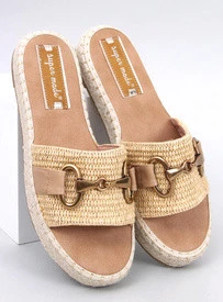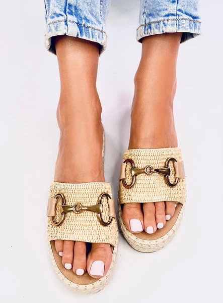 Klapki damskie - espadryle na wysokiej podeszwie. Efektowna klamerka oraz słomkowe wykończenie to idealne połączenie : ) Jeśli chcesz się poczuć wyjątkowo to musisz je mieć... Espadryle to idealne buty na lato! Materiał zewnętrzny - skóra ekologiczna.