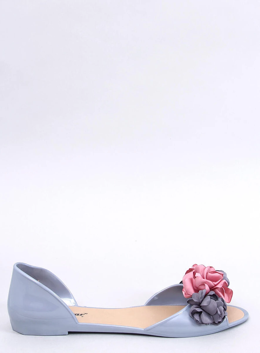Baleriny damskie - meliski open-toe. Wykonane są z błyszczącej i plastycznej gumy, ale to co przyciąga wzrok to przepiękne i najmodniejsze w tym sezonie kwiaty na przodzie... Te buty z pewnością staną się ozdobą Twoich letnich stylizacji : ) My już straciłyśmy dla nich głowę... Materiał zewnętrzny – guma.