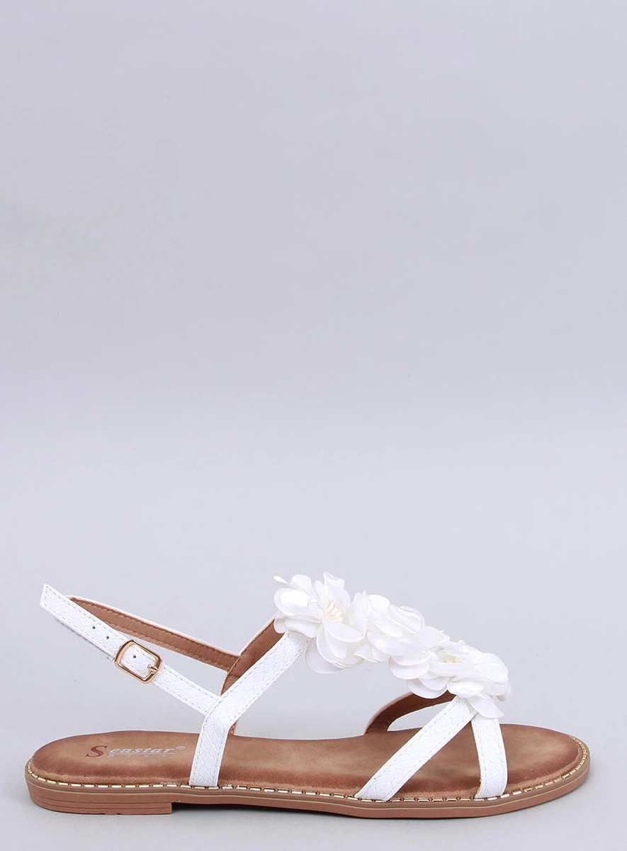 Sandałki z delikatnymi kwiatami AMAUR WHITE