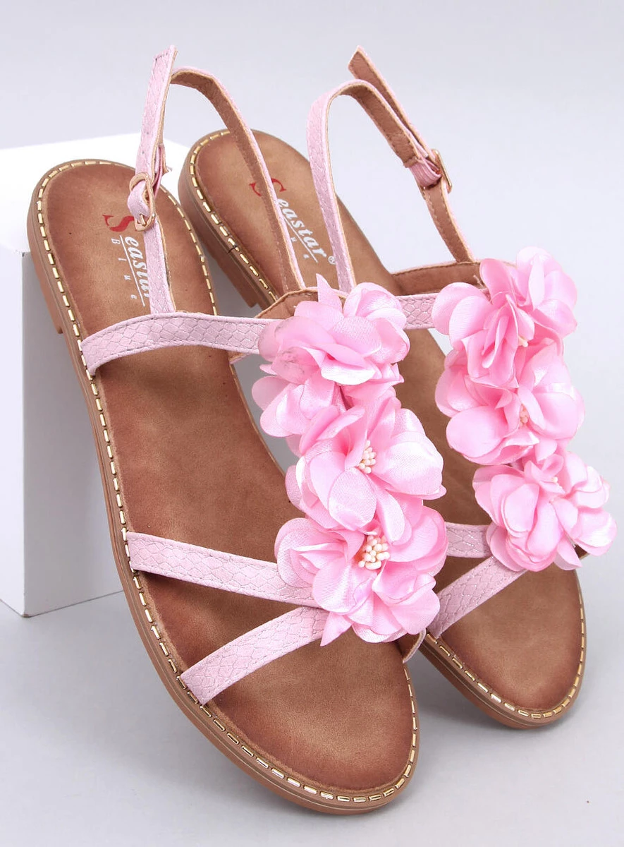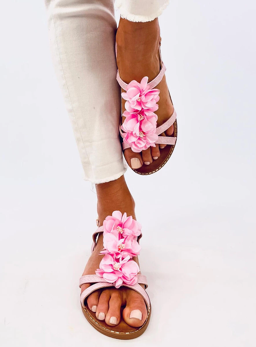 Sandałki z delikatnymi kwiatami AMAUR PINK