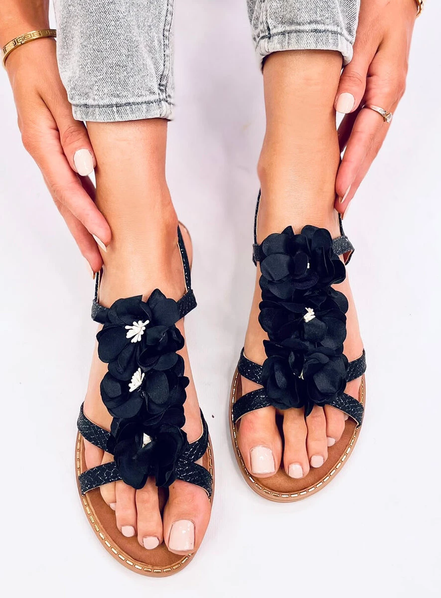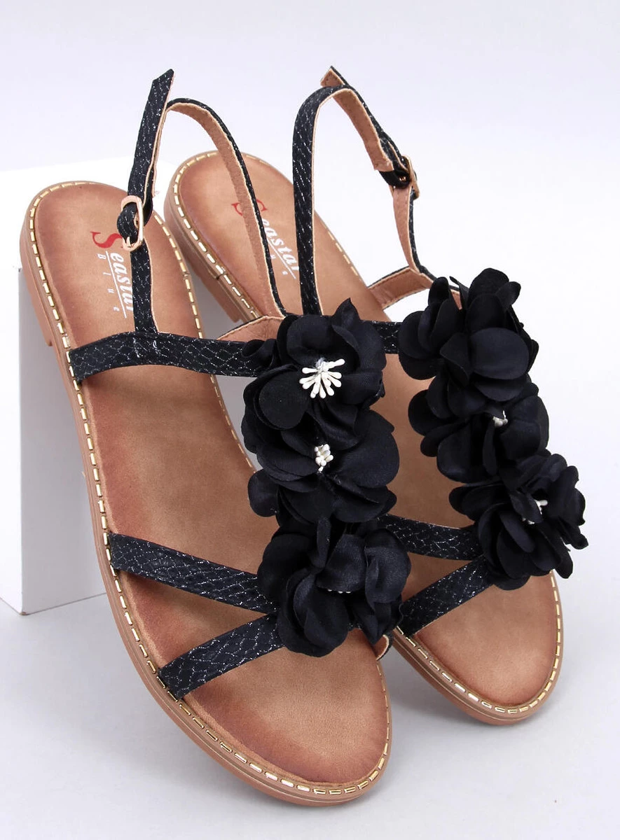 Opalizujące sandałki damskie na płaskiej podeszwie. Kwiecista aplikacja oraz motyw skóry wężą dodaje butom niepowtarzalnego uroku - zakochacie się w nich od pierwszego wejrzenia : ) Wybierając je nie musicie martwić się o wygodę - miękka wkładka wewnętrzna zapewni komfort na każdym kroku! Materiał zewnętrzny – skóra ekologiczna + tkanina.