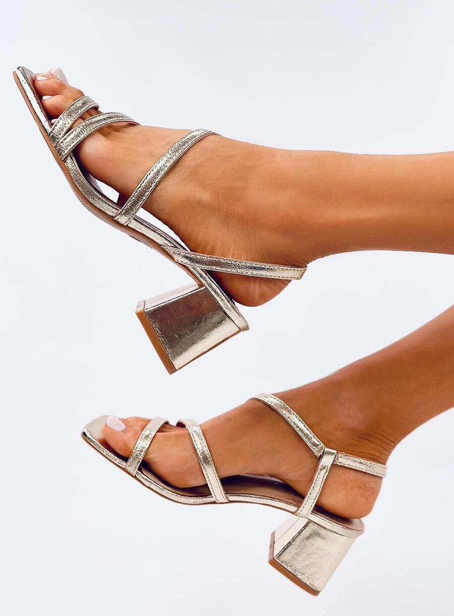 Sandałki damskie na niskim obcasie. Wzrok przyciąga metaliczne wykończenie, które pięknie podkreśli wakacyjną opaleniznę... Szeroki obcas o wysokości 6 cm jest nie tylko stabilny, ale również modny w tym sezonie. Daj im szansę podbić swoją garderobę! Materiał zewnętrzny – skóra ekologiczna.