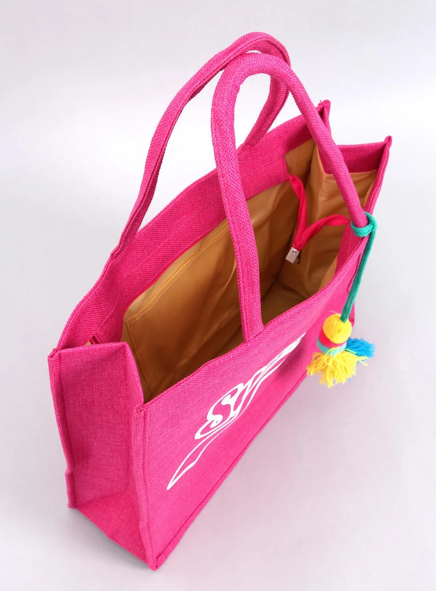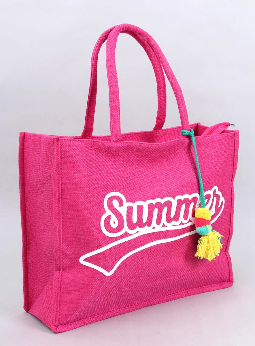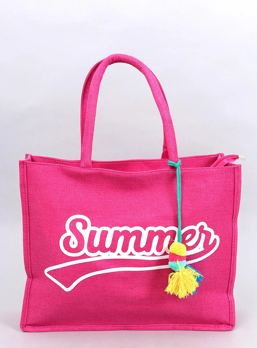 Torba plażowa damska z kolorowym frędzelkiem. Front zdobi wakacyjny napis "SUMMER". Torba zapinana na całej długości na zamek błyskawiczny, wnętrze obszyte jest podszewką z małą zakładką. Jest bardzo pojemna, a przy tym bardzo lekka. Z łatwością pomieści wszystkie najpotrzebniejsze rzeczy, które przydadzą się na plażę lub spacer.
