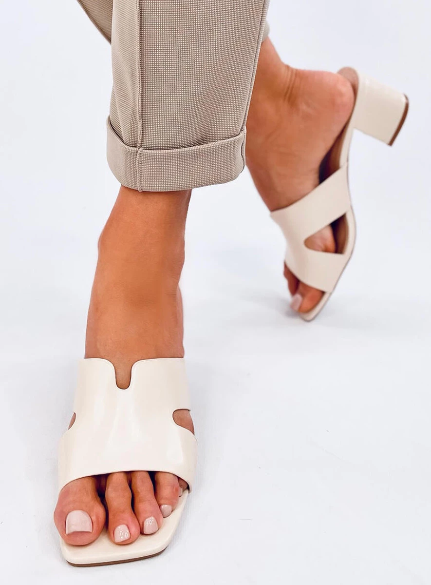 Licowe klapki damskie na obcasie o wysokości 6 cm. Ten model wyróżnia stylowy design oraz najmodniejsza, kwadratowa podeszwa. Jeśli podążasz za trendami to te klapki są stworzone dla Ciebie : ) Z pewnością sprawdzą się na wyjątkowe okazje... Materiał zewnętrzny - skóra ekologiczna.