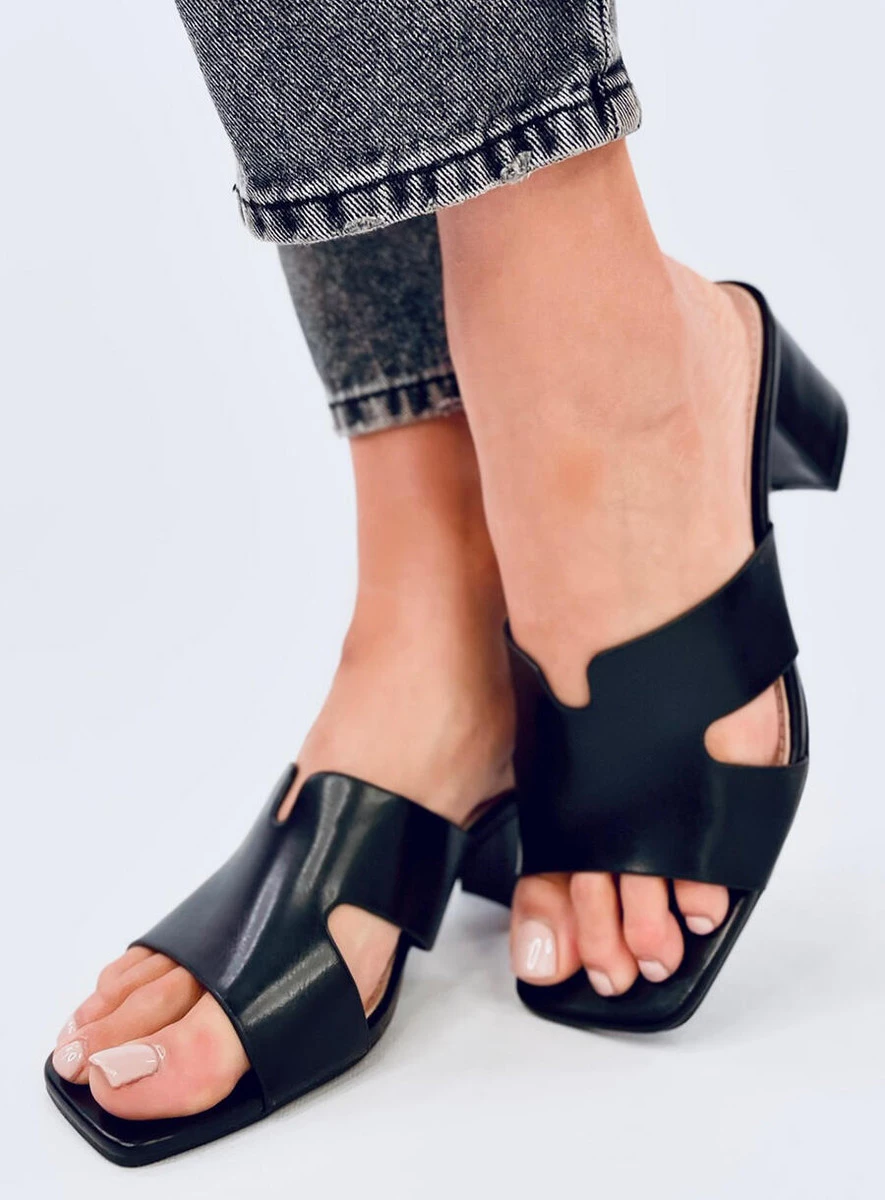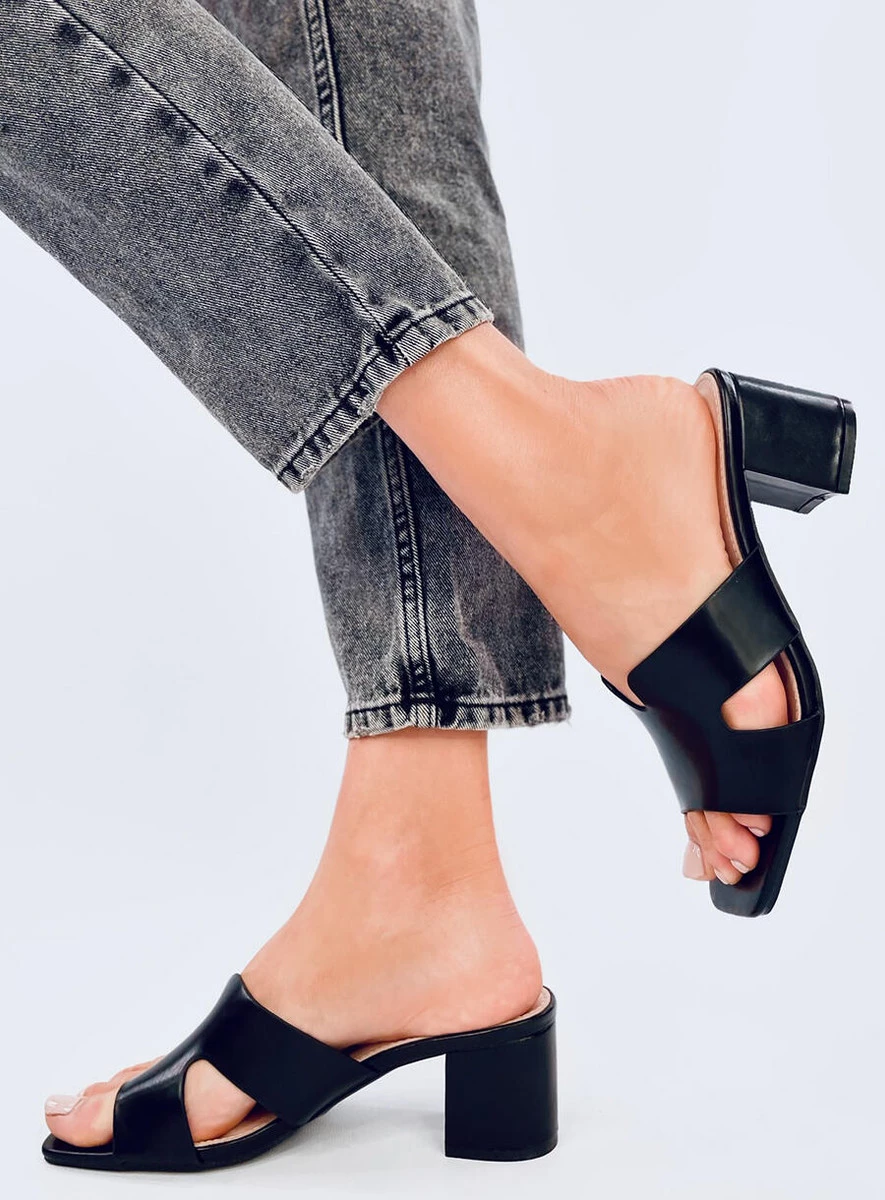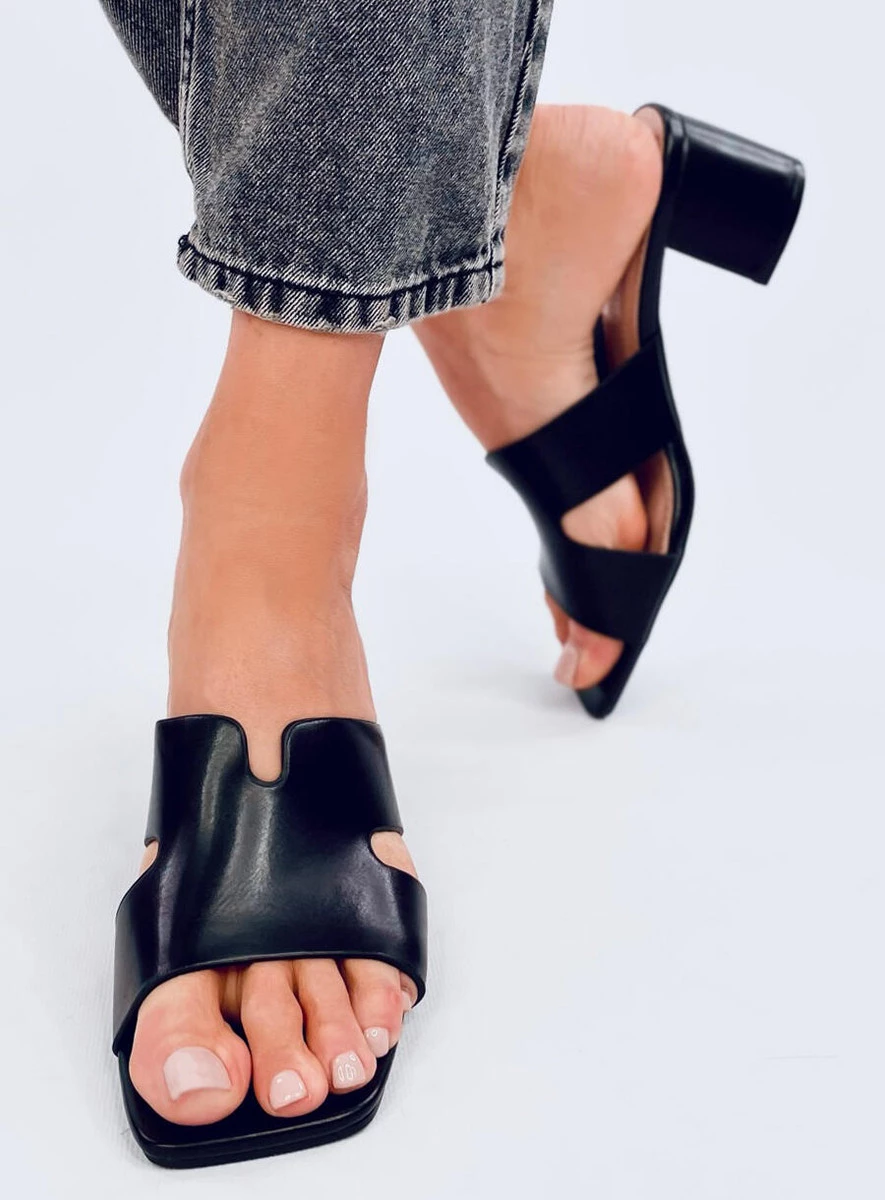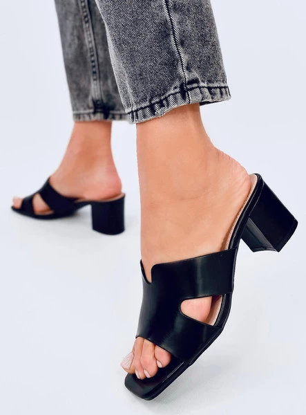 Licowe klapki damskie na obcasie o wysokości 6 cm. Ten model wyróżnia stylowy design oraz najmodniejsza, kwadratowa podeszwa. Jeśli podążasz za trendami to te klapki są stworzone dla Ciebie : ) Z pewnością sprawdzą się na wyjątkowe okazje... Materiał zewnętrzny - skóra ekologiczna.
