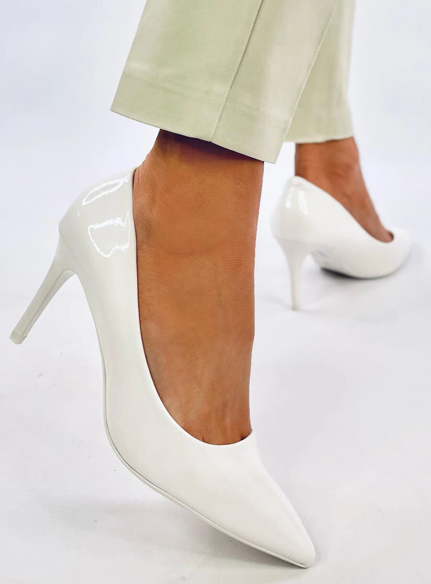 Czółenka na szpilce lakierowane CHARLOTTE WHITE