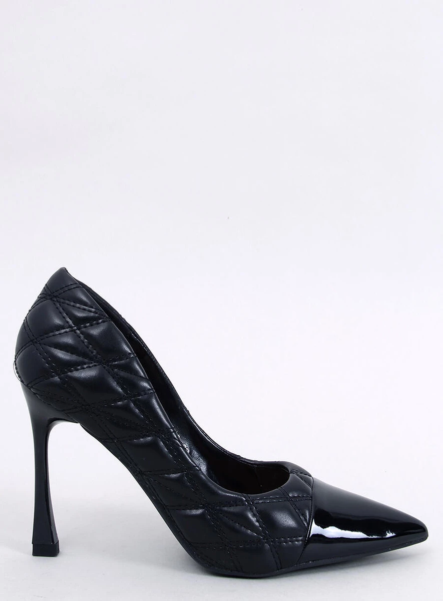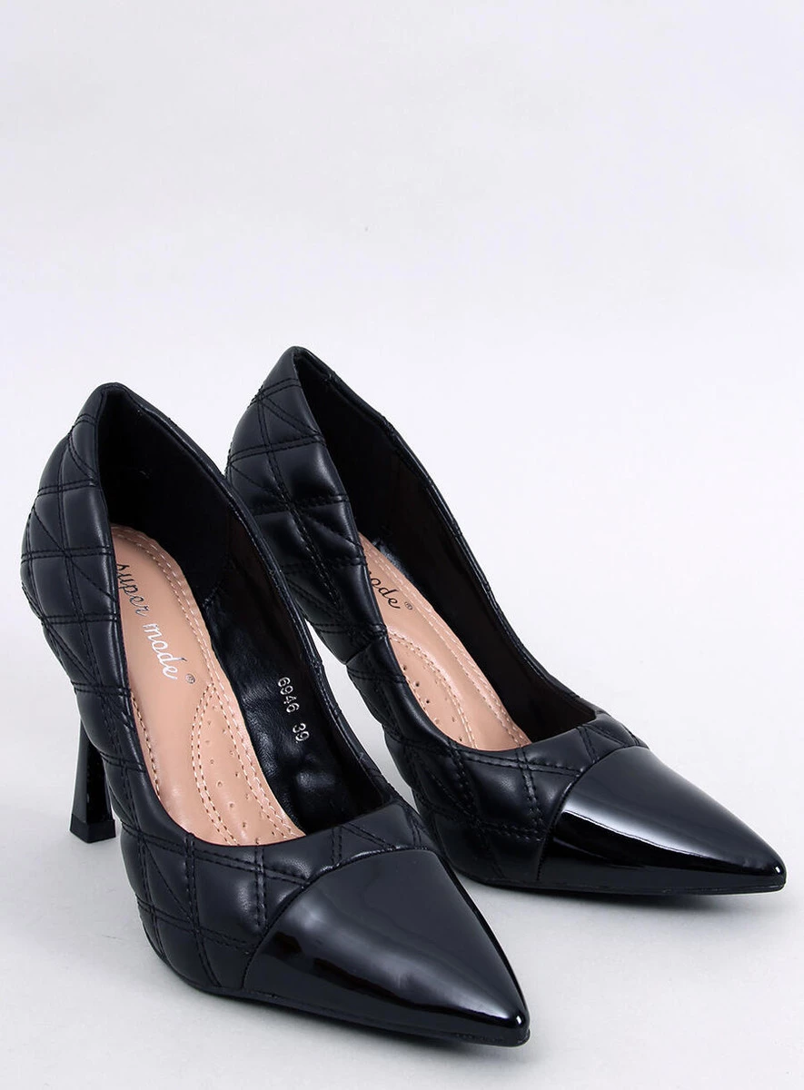 Czółenka damskie na szpilce o wysokości 10,5 cm. Modne pikowane oraz lakierowane noski podkreślają ich wyjątkowy styl... Ponadto mają mięciutką wkładkę wewnętrzną, która zapewni komfort na każdym kroku. Na pewno skradną Wasze serca : ) Idealne na wyjątkowe okazje - wesele, studniówkę czy bal... Materiał zewnętrzny - skóra ekologiczna.