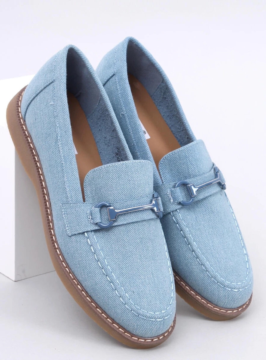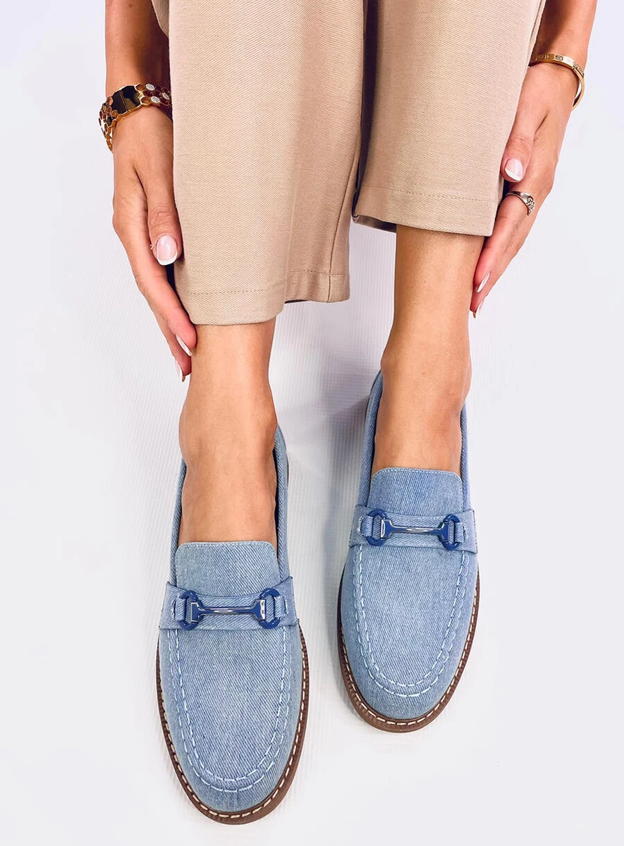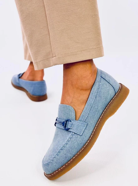 Mokasyny damskie z tkaniny a la jeans. Jeśli w swoich stylizacjach stawiasz na klasykę, to na pewno ten model przykuje Twoją uwagę... Mają zgrabny fason z zaokrąglonymi noskami i klamerką. Idealnie podkreślą Twój styl : ) Materiał zewnętrzny - tkanina.