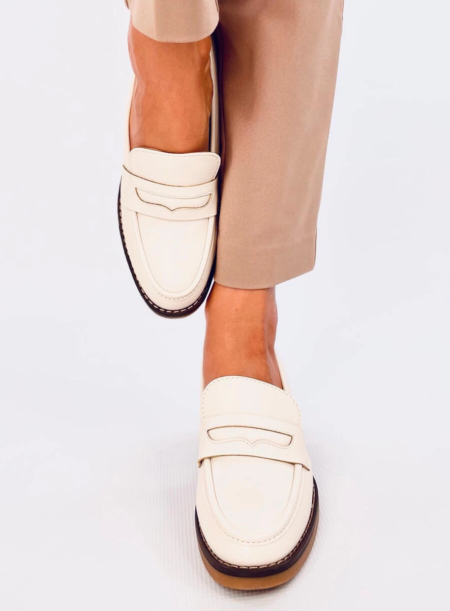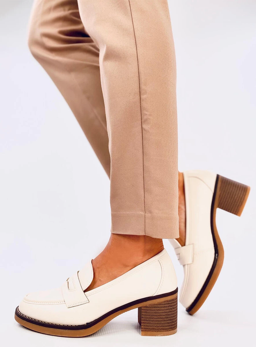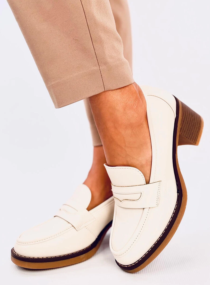 Mokasyny na szerokim i stabilnym obcasie. Wykonane są z licowej skóry ekologicznej- idealne na przejściowe pory roku. Świetnie trzymają się stopy.
