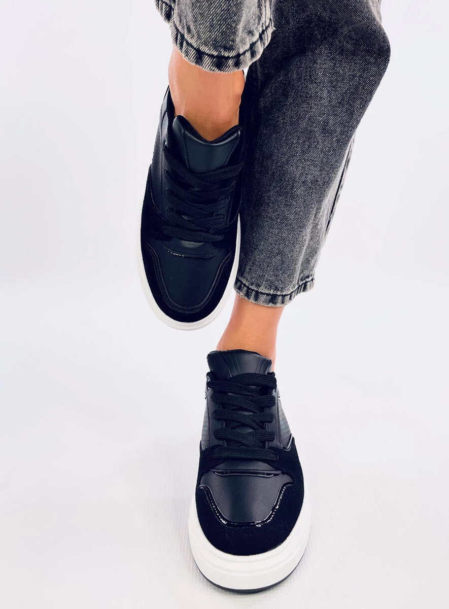 Sneakersy damskie na wysokiej podeszwie. Połączeniu wielu faktur materiałów sprawia, że wyglądają wyjątkowo. Zamszowe, licowe i lakierowane wstawki dają niebanalny efekt. Buty są wygodne i świetnie trzymają się nogi.