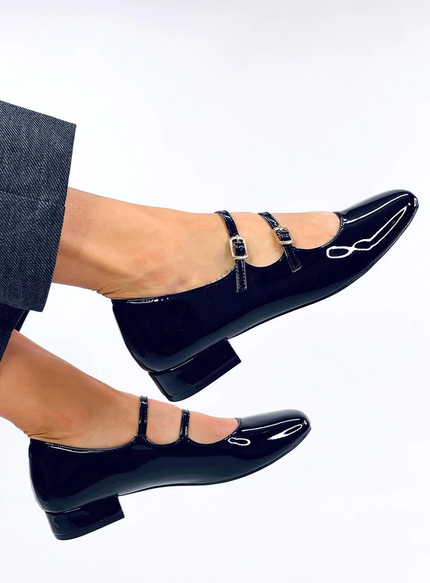 Baleriny damskie na niskim obcasie w stylu Mary Jane. Mają prosty fason z kwadratowymi noskami i subtelnymi paseczkami, które podkreślają stopę. Najlepszy wybór dla miłośniczek aktualnych trendów - nie czekaj i zamów je już dziś : ) Materiał zewnętrzny - skóra ekologiczna lakierowana.