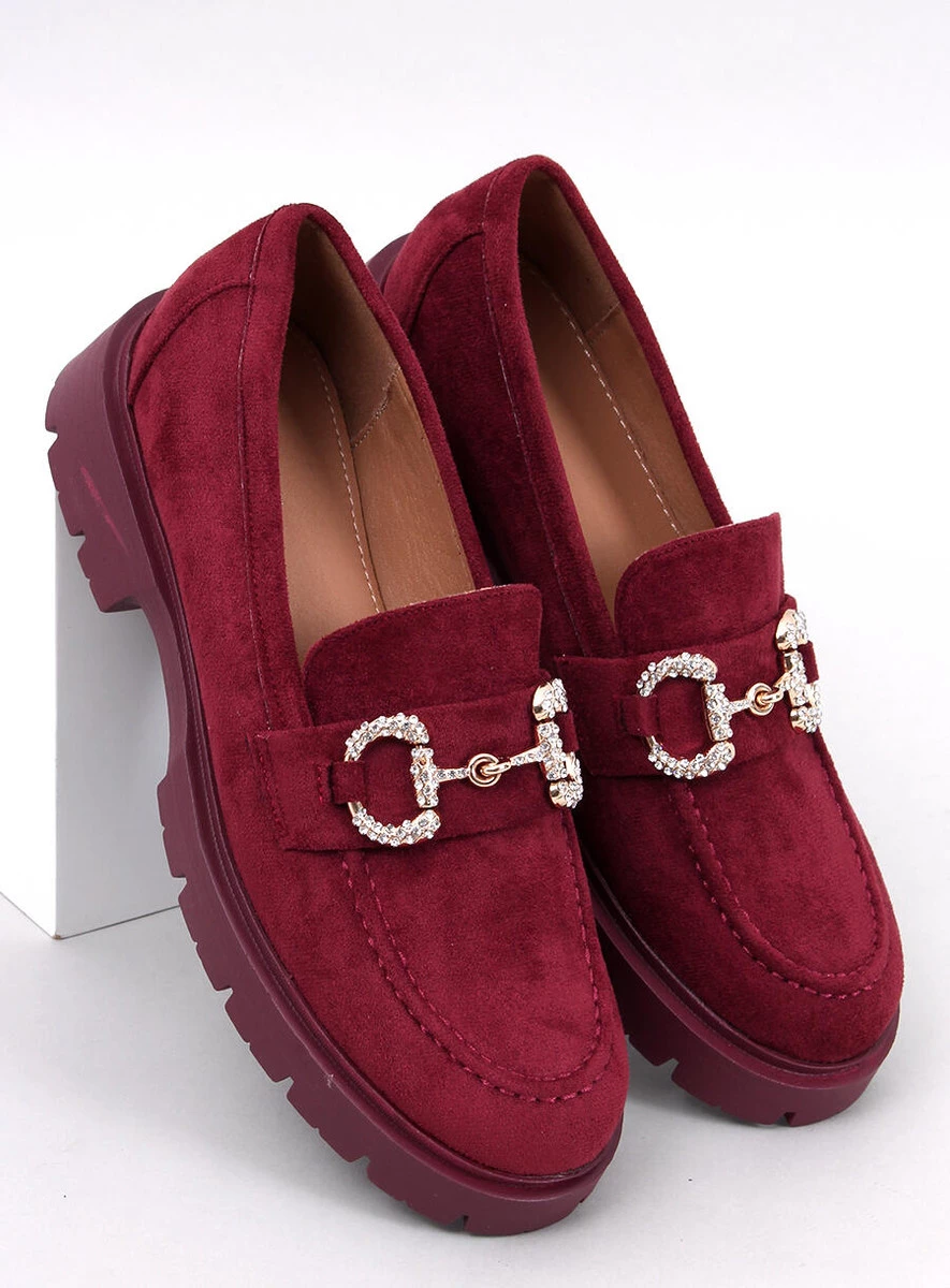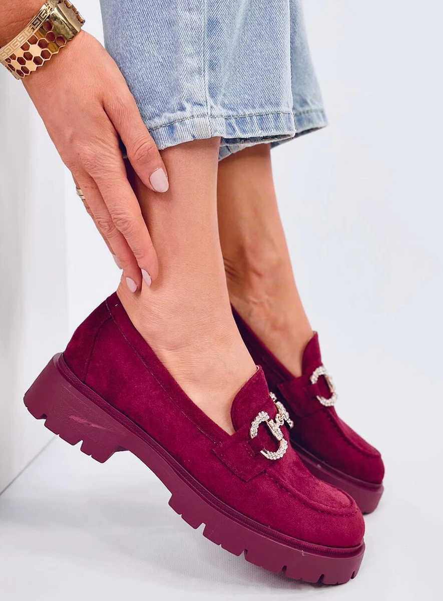 Mokasyny damskie na wysokiej podeszwie. Błyszcząca klamerka wysadzana kamieniami przyciągnie spojrzenia... Te buty sprawdzą się zarówno w stylizacjach na co dzień jak i w bardziej formalnych zestawach – przekonaj się o tym sama : ) Materiał zewnętrzny – zamsz ekologiczny.