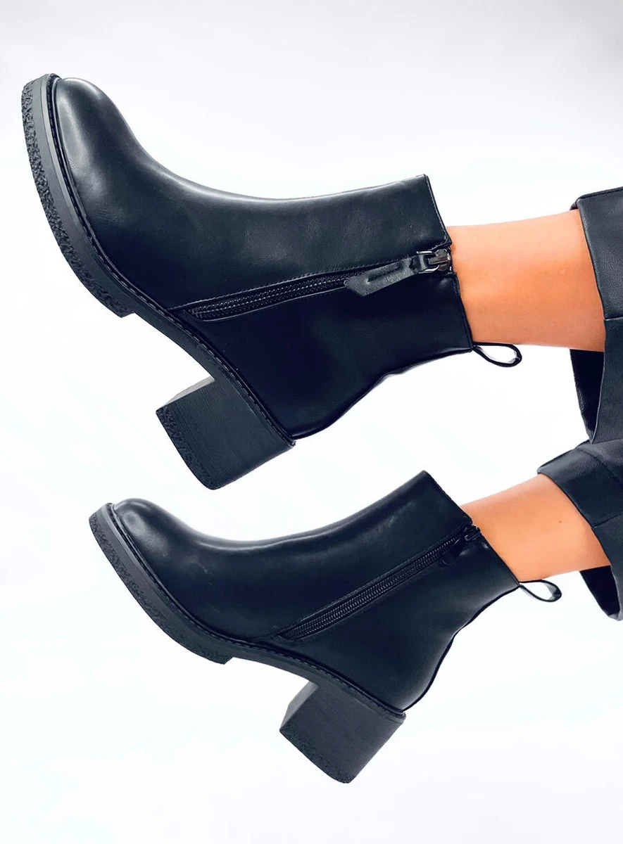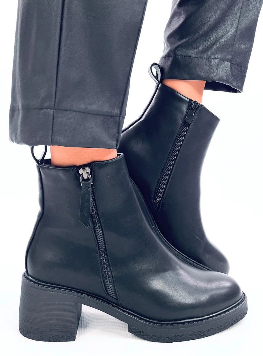 Licowe botki damskie na szerokim obcasie o wysokości 6 cm To klasyczny model, który doskonale sprawdzi się w każdej codziennej sytuacji : ) Wygodnym rozwiązaniem jest zapięcie na zamek błyskawiczny z boku cholewki. Nie daj się dłużej namawiać : ) Wykonane są ze skóry ekologicznej, na piankowym podszyciu.