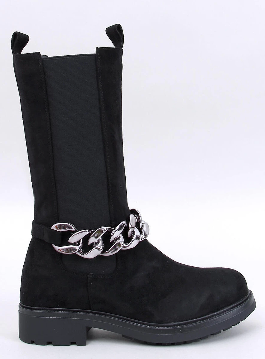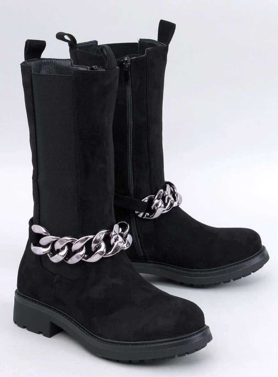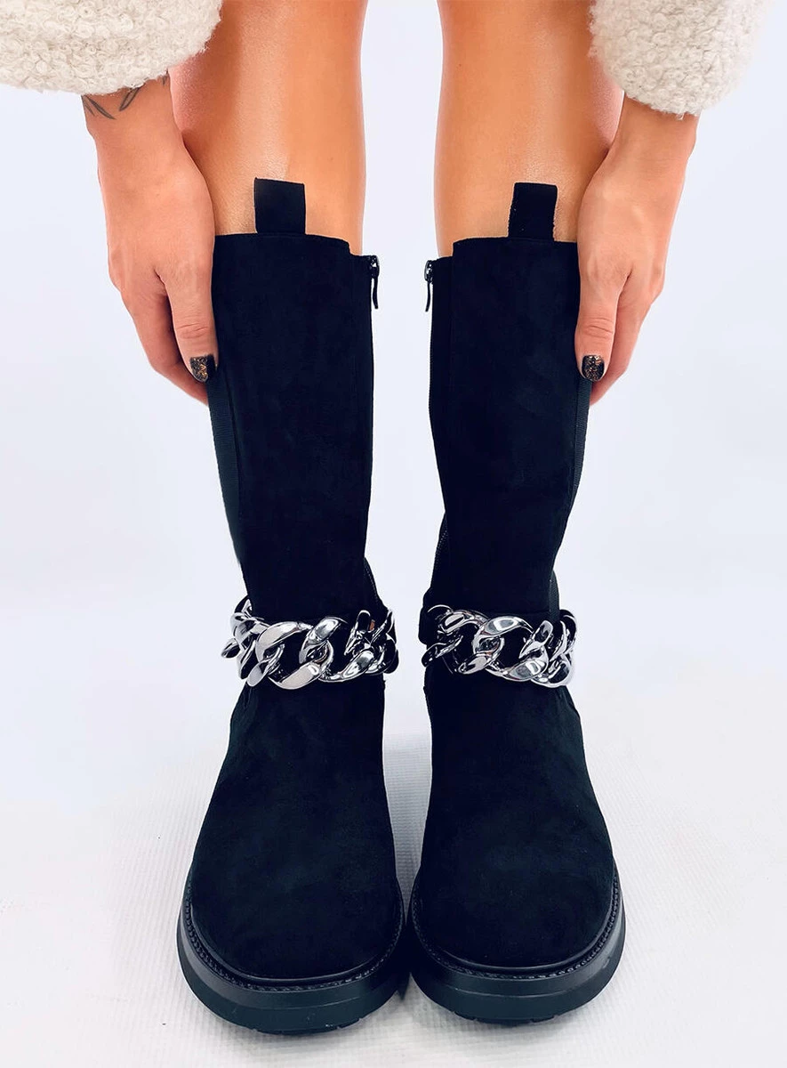 Zamszowe botki damskie - sztyblety. Mają unikalny fason z wysoką cholewką i elastyczną wstawką z boku, która nawiązuje do sztybletów. To co przyciąga wzrok to najmodniejszy łańcuch, który jest odpinany. Nie czekaj i zamów je już dziś! Praktyczne zapięcie na suwak ułatwia zakładanie. Wykonane są z zamszu ekologicznego, na piankowym podszyciu.