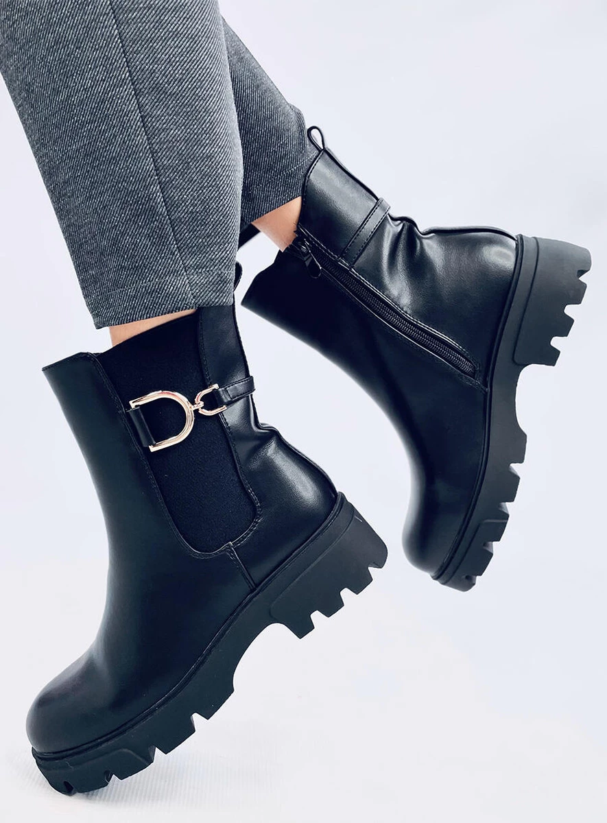 Licowe sztyblety damskie na szerokim obcasie - 5 cm i platformie - 2 cm. Mają klasyczny fason z elastyczną wstawką z boku oraz praktycznym zapięciem na suwak. Urozmaiceniem cholewki jest stylowa ozdoba w złotym kolorze... Nie czekaj i zamów je już teraz! Wykonane są ze skóry ekologicznej, a wnętrze wyścielone jest delikatnym futerkiem.