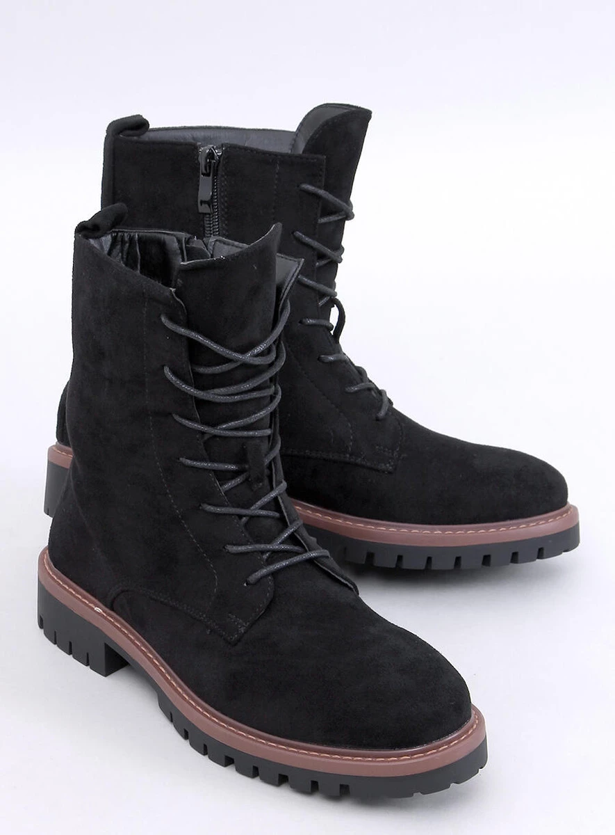 Zamszowe botki damskie - workery na protektorze. Praktyczne zapięcie na zamek błyskawiczny z boku cholewki zapewnia szybkie i bezproblemowe zakładanie, a dzięki tradycyjnemu sznurowaniu można buty idealnie dopasować do tęgości stopy. Z pewnością spełnią Twoje oczekiwania : ) Wykonane są z zamszu ekologicznego, a wnętrze wyścielone jest delikatnym futerkiem.