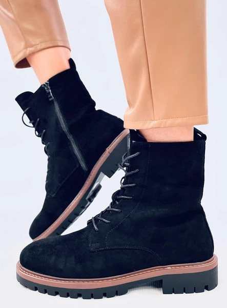 Opinie o Botki sznurowane zamszowe SIMMER BLACK