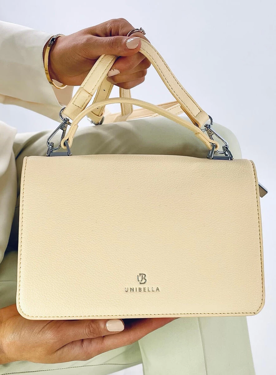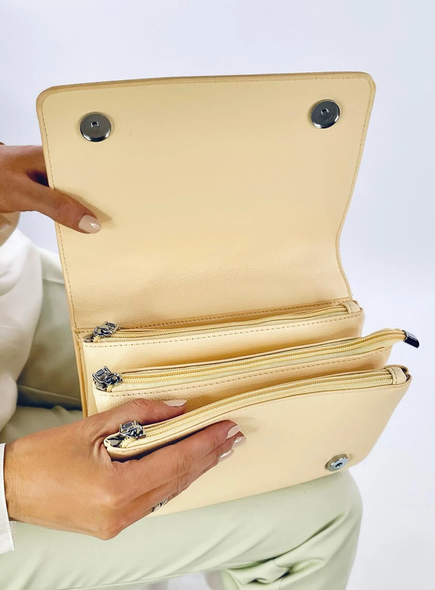 Torebka damska typu kuferek. Ma długi (odpinany) pasek z możliwością regulacji. Zapinana jest klapą na zatrzask magnetyczny, a w środku znajdują się trzy oddzielne komory na suwak. Jest niezwykle praktyczna, a przy tym stylowa. Materiał zewnętrzny - skóra ekologiczna.