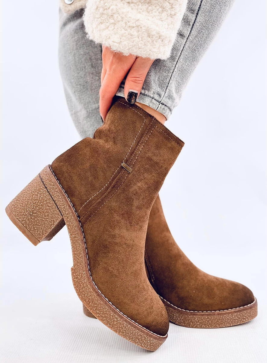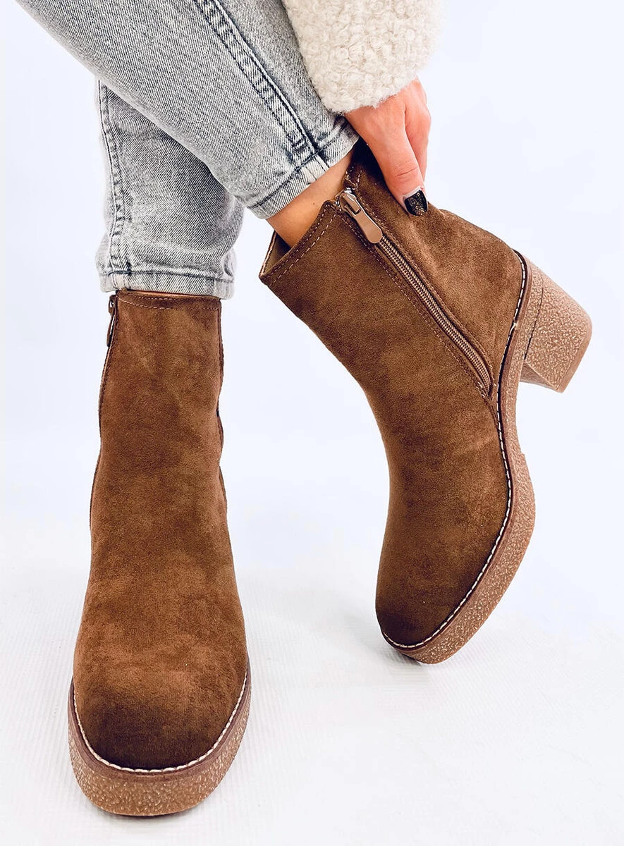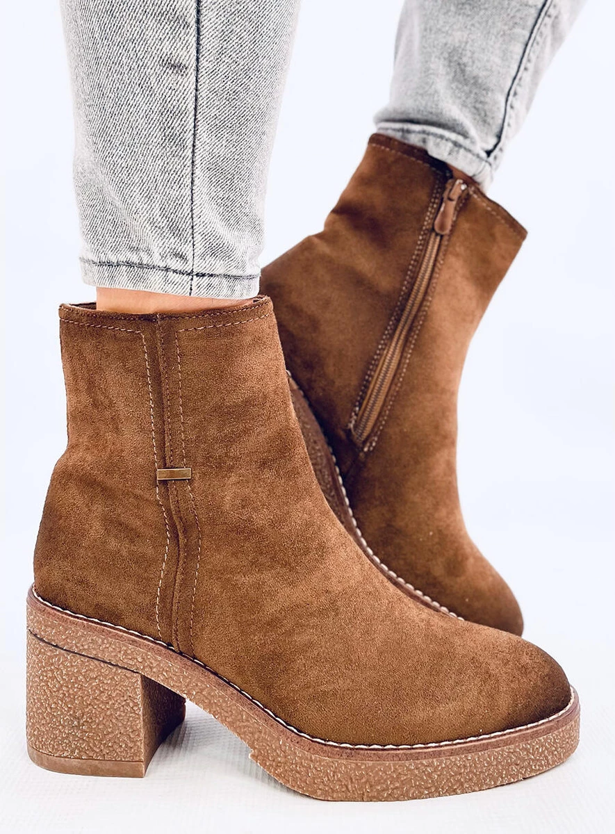 Botki damskie na stabilnym obcasie o wysokości 7,5 cm. To klasyczny model, który doskonale sprawdzi się w każdej codziennej sytuacji : ) Wygodnym rozwiązaniem jest zapięcie na zamek błyskawiczny z boku cholewki. Nie daj się dłużej namawiać : ) Wykonane są z zamszu ekologicznego, a wnętrze wyścielone jest delikatnym futerkiem.